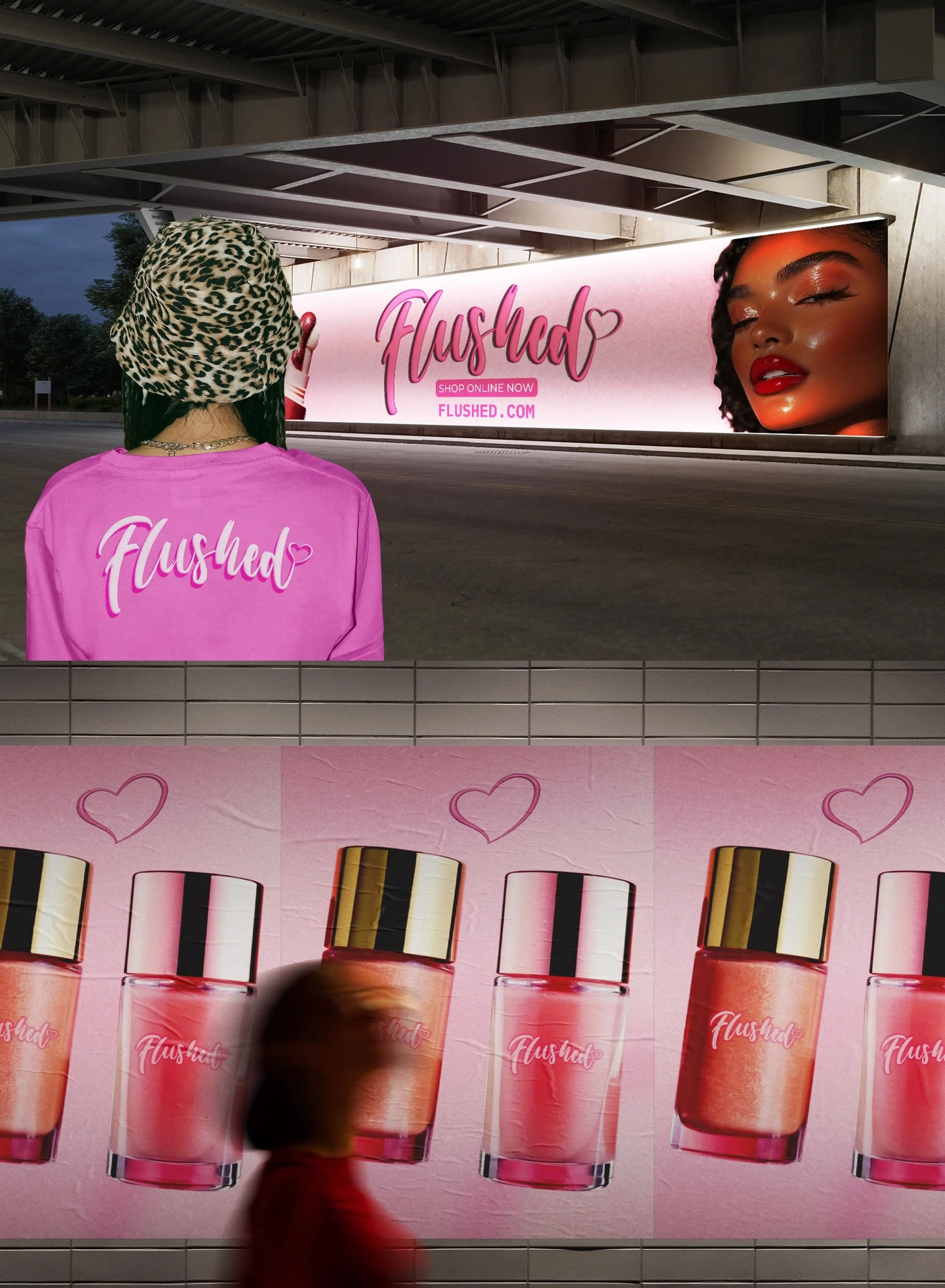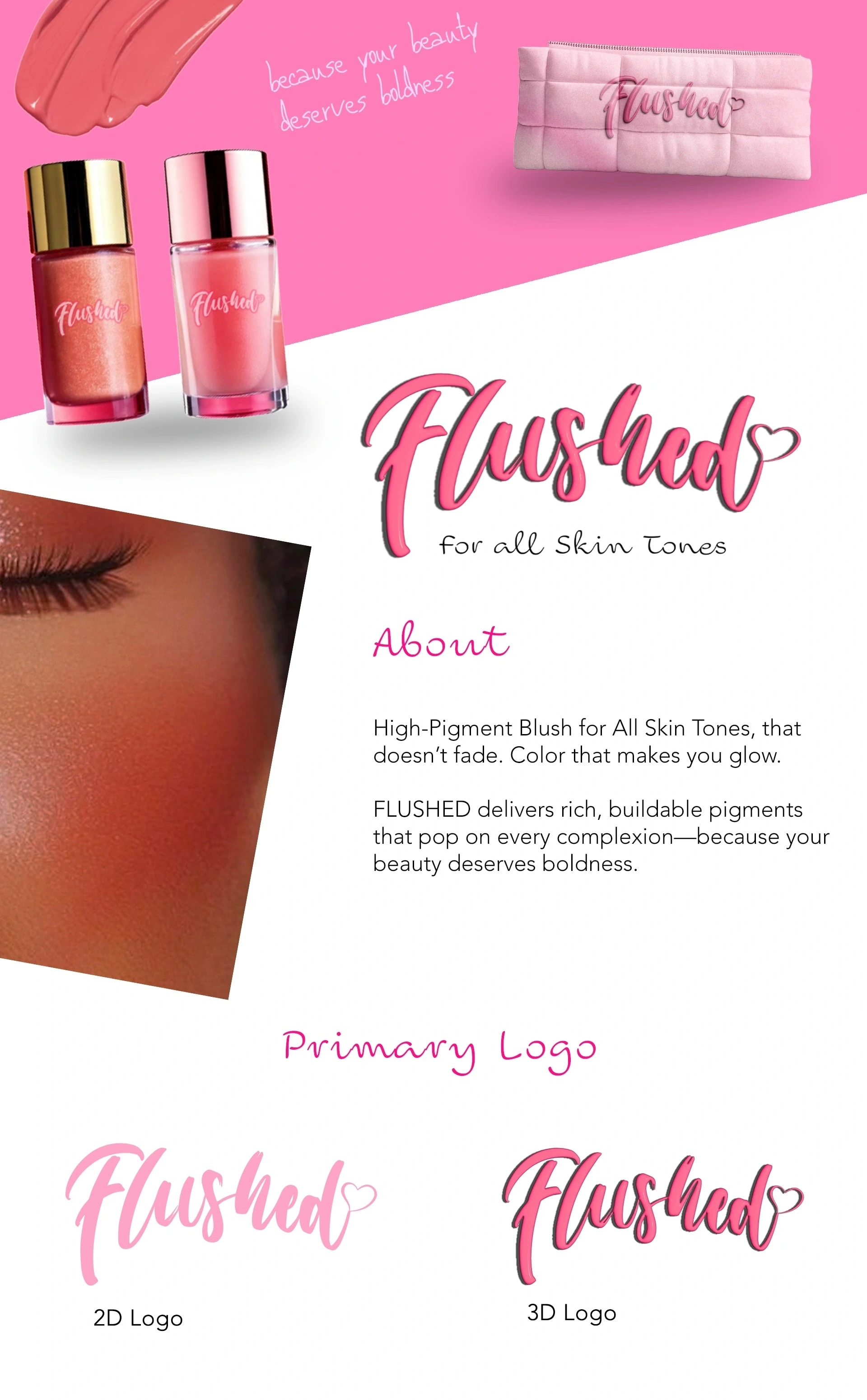 The project aimed to create a bold, inclusive brand identity that stood out in a saturated cosmetics market. From a playful yet powerful logo design to a clear, story-driven tagline, the identity highlights color, confidence, and inclusivity. The outcome was a visual system that positions Flushed as more than a makeup brand—it’s a statement of representation, fun, and unapologetic beauty.