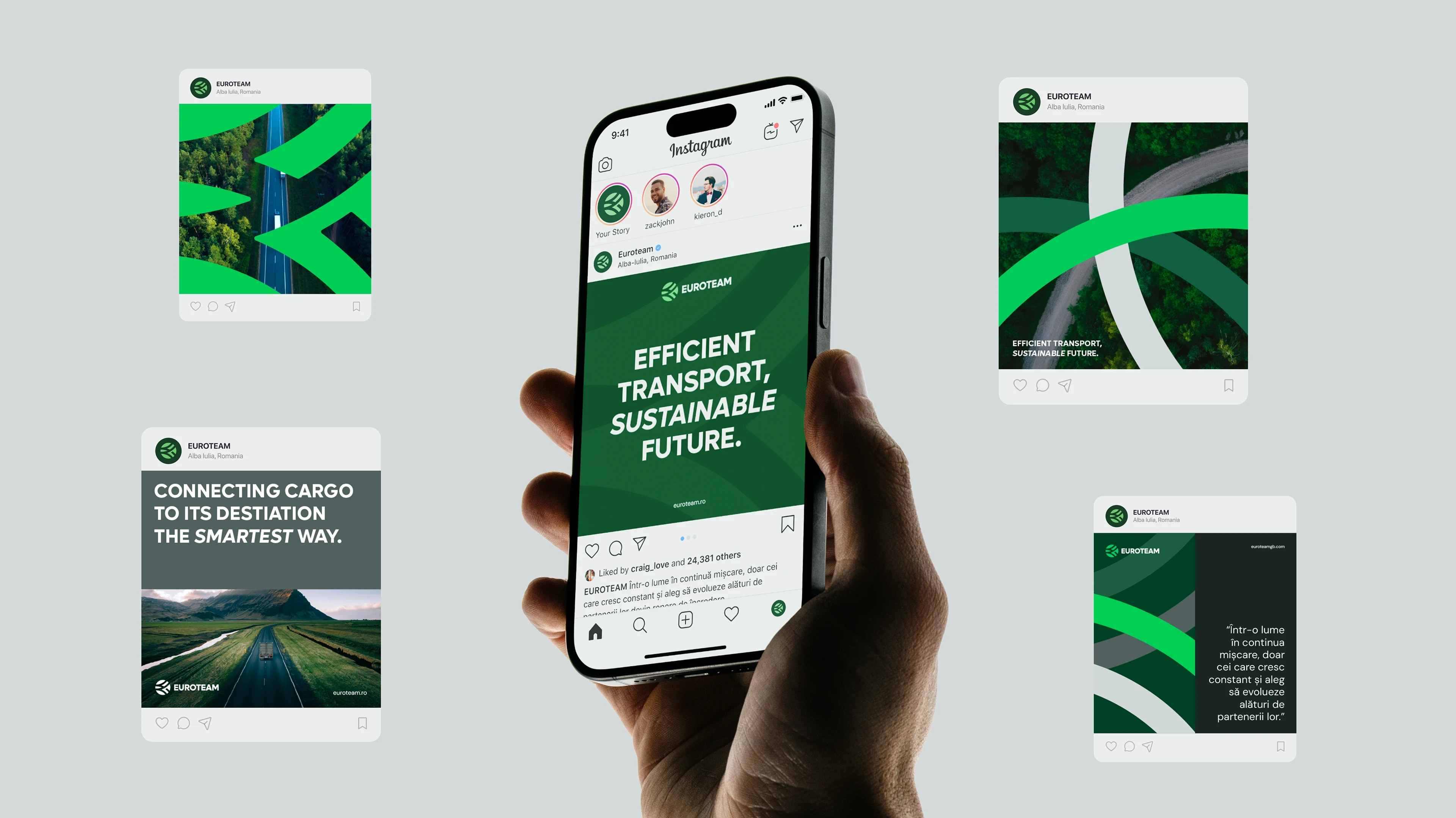 The result is a cohesive visual system that positions Euroteam as a modern, sustainable transport leader—one that leverages smart connections to create efficient solutions for tomorrow's logistics challenges.