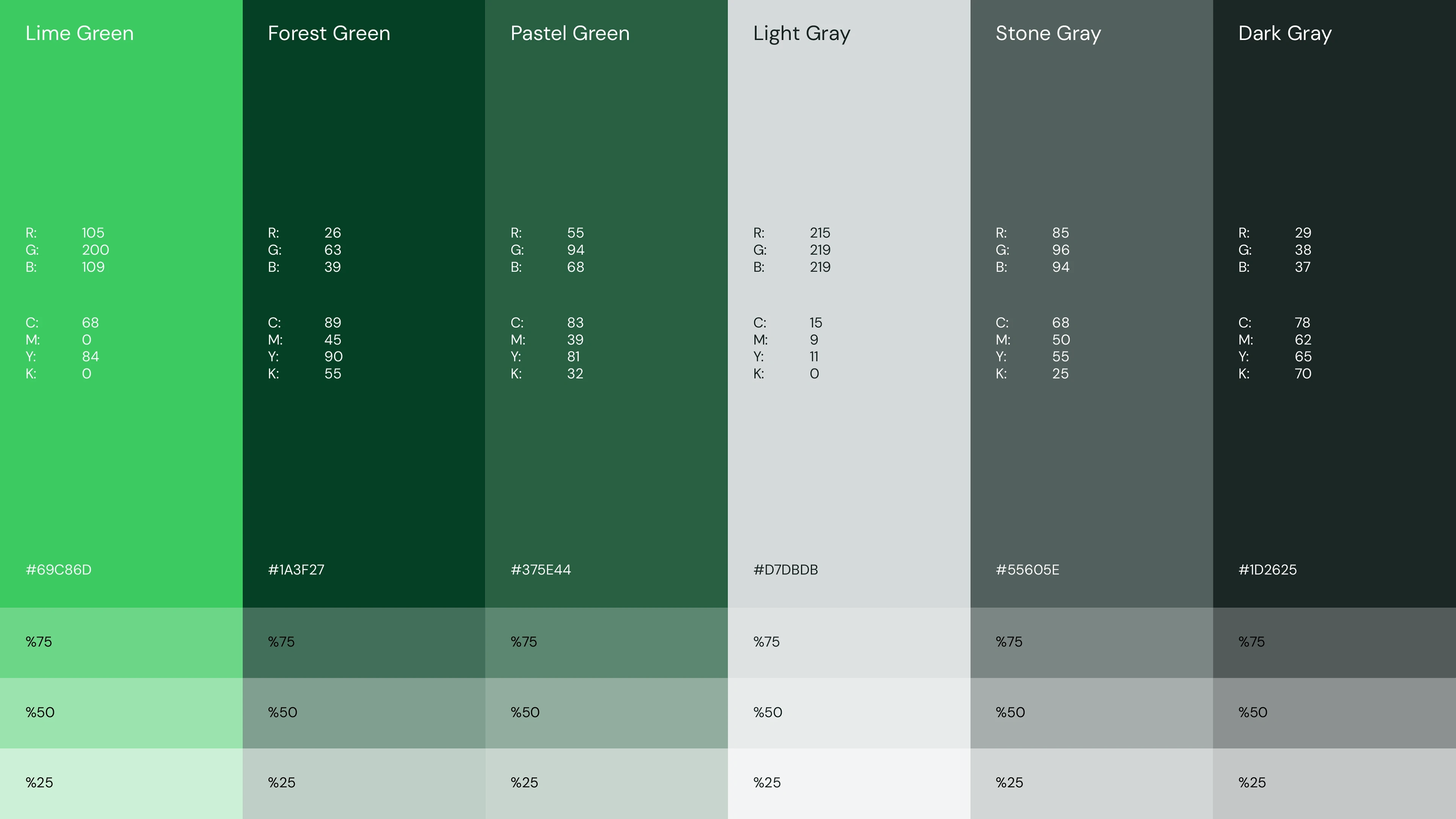 The identity is anchored in a confident green palette ranging from deep forest tones to vibrant, energetic greens. This color choice reinforces the sustainability promise while maintaining strong visibility across all touchpoints, from trucks and internal posters to digital interfaces.