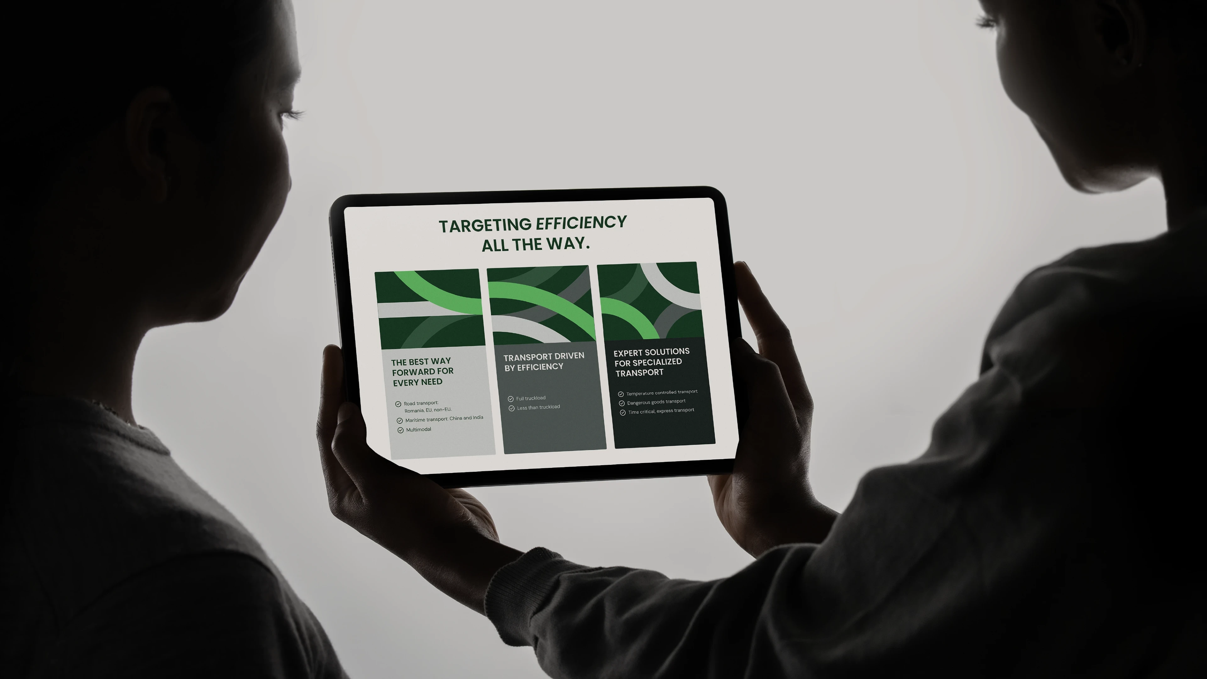 We based the identity on Euroteam’s ambition of becoming a global leader in logistics and cargo transportation as well as the newly redefined brand idea of smart connections—people and tech connecting data points in order to efficiently connect trucks and drivers, cargo and destinations—leading to the promise of delivering efficient transport that drives a sustainable future.