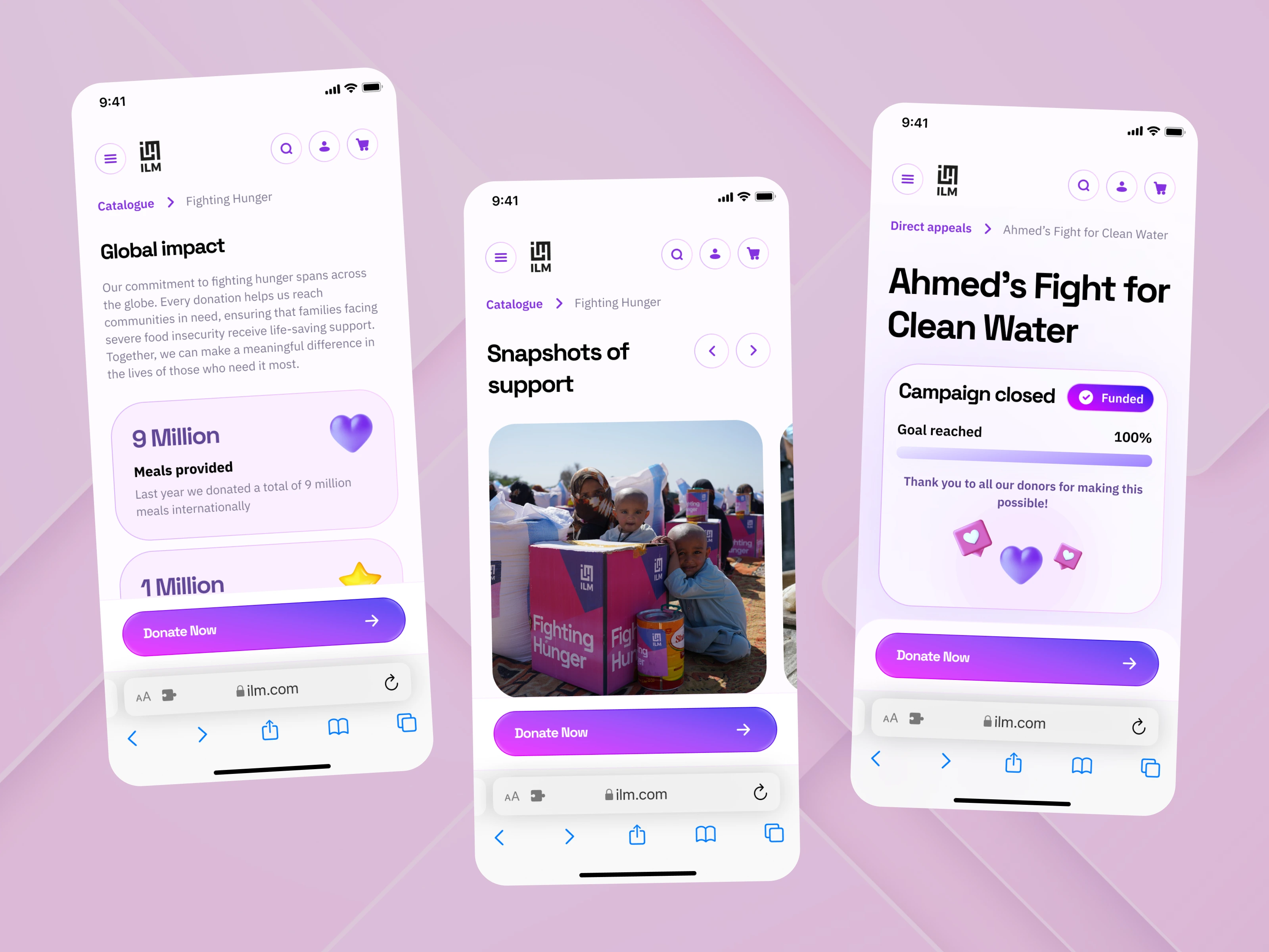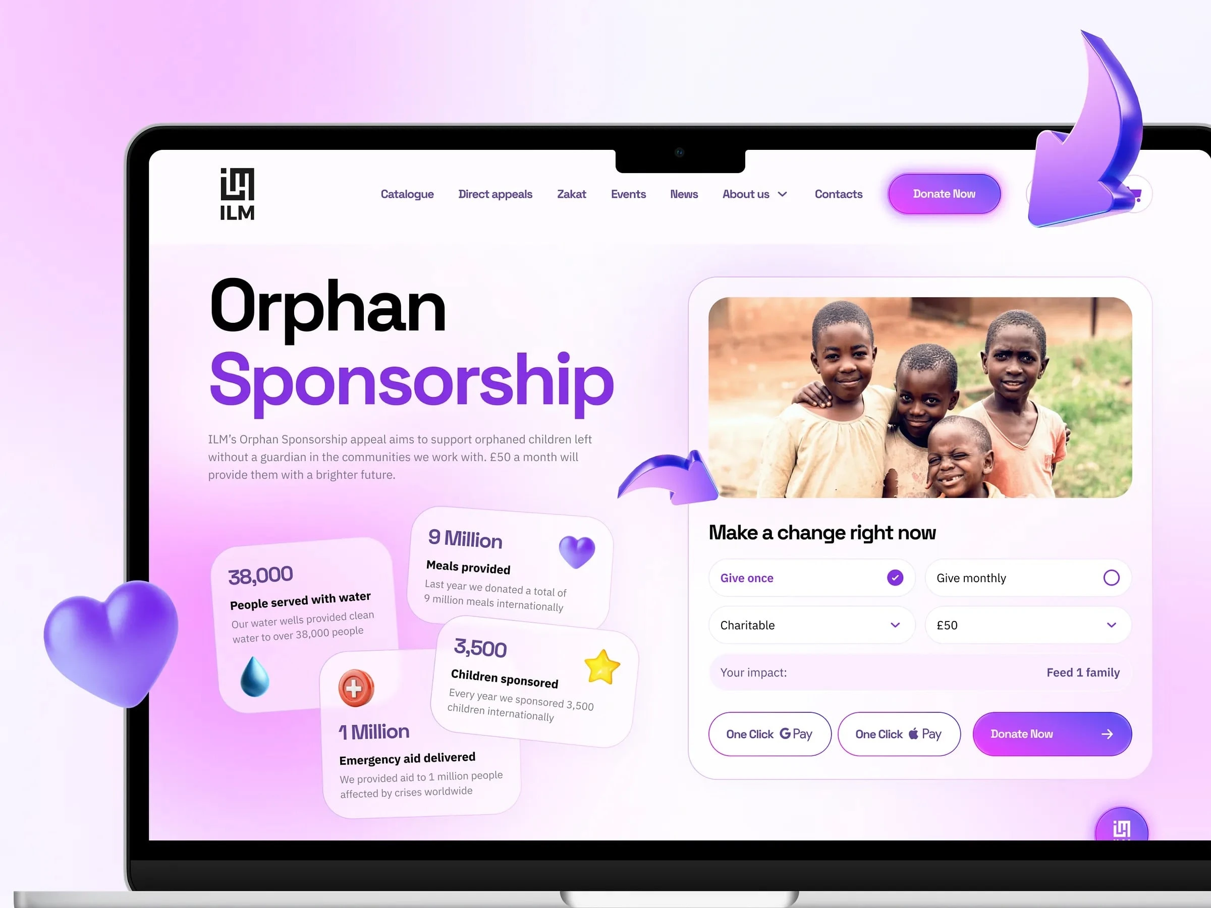 We redesigned the ILM charity website with the mission of making the donation process more engaging, inspiring, and emotionally resonant. The new design integrates 3D visuals, subtle animations, and gamification elements, transforming the act of giving into a more interactive and rewarding experience.