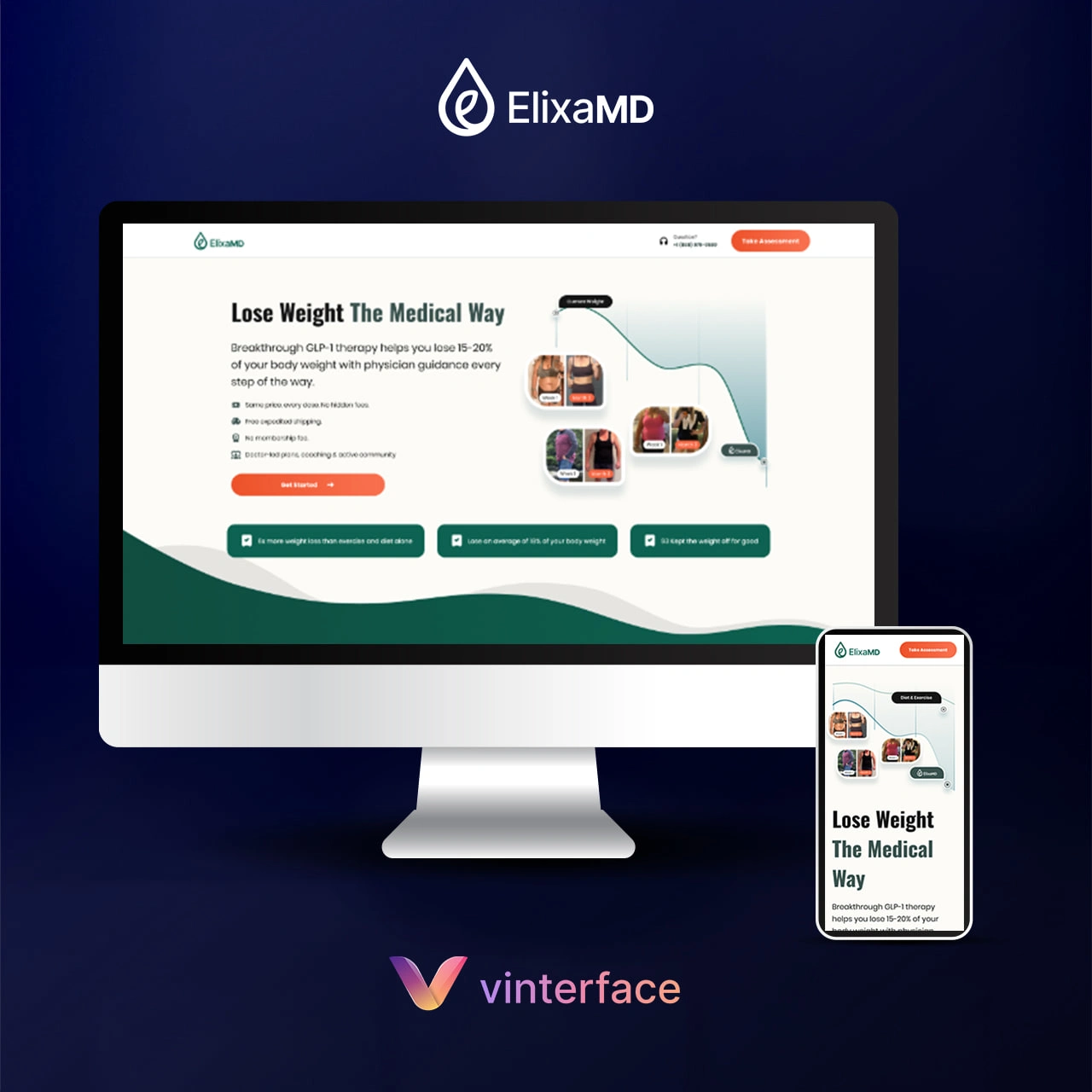 Elixa MD is a GLP-1 health and wellness brand that needed a high-converting landing page for their marketing campaign. The challenge: build everything from scratch—brand identity, visual system, typography, color palette, logo, and a fully optimized landing page focused on driving conversions.