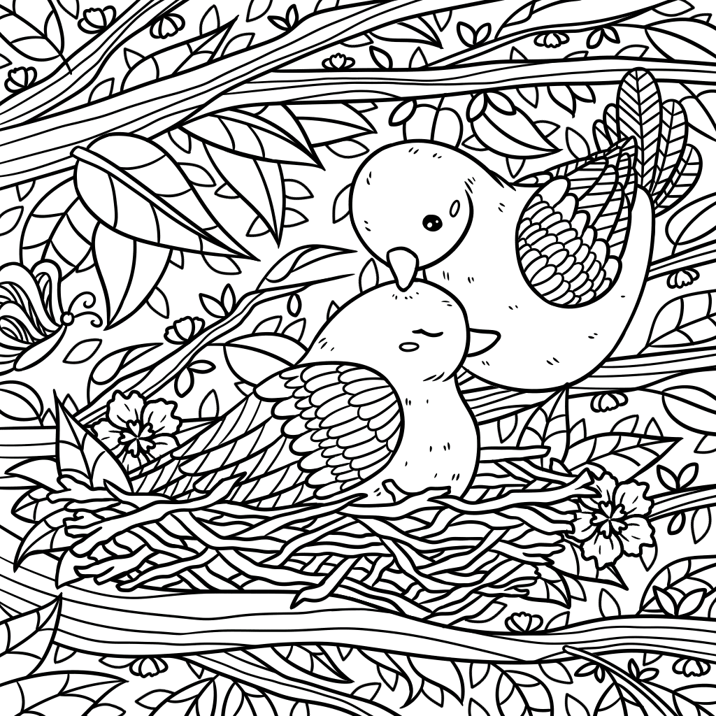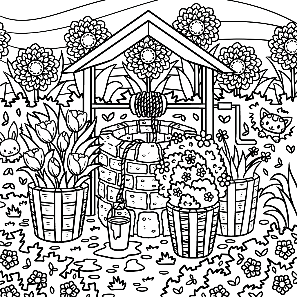 A collection of illustrations from a coloring book project is theme around springtime magic.