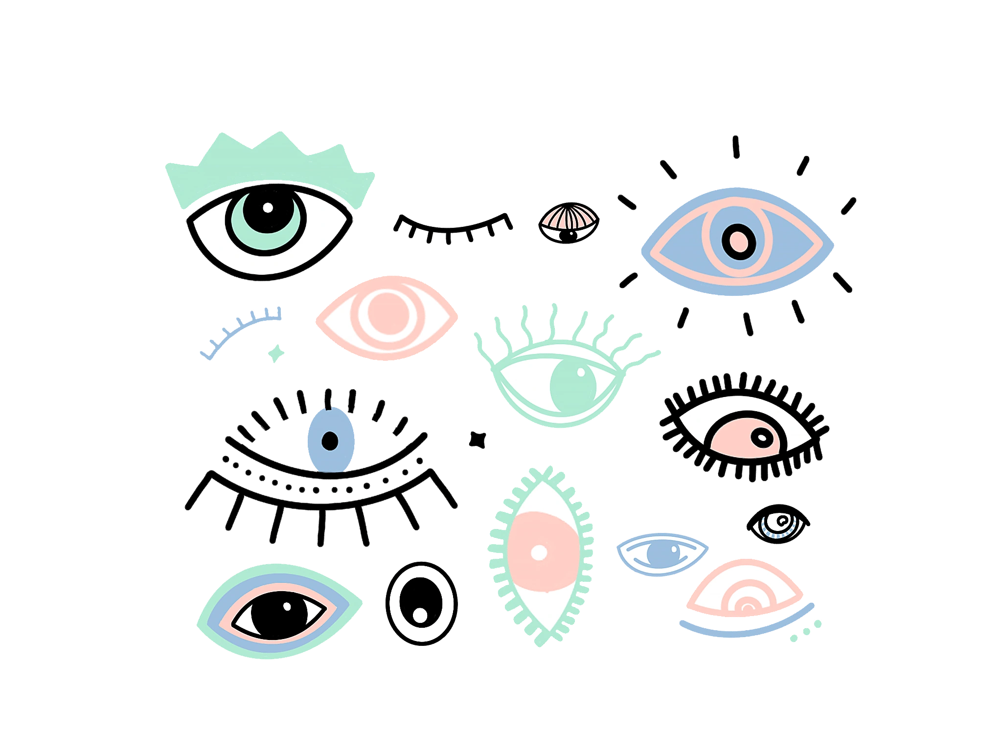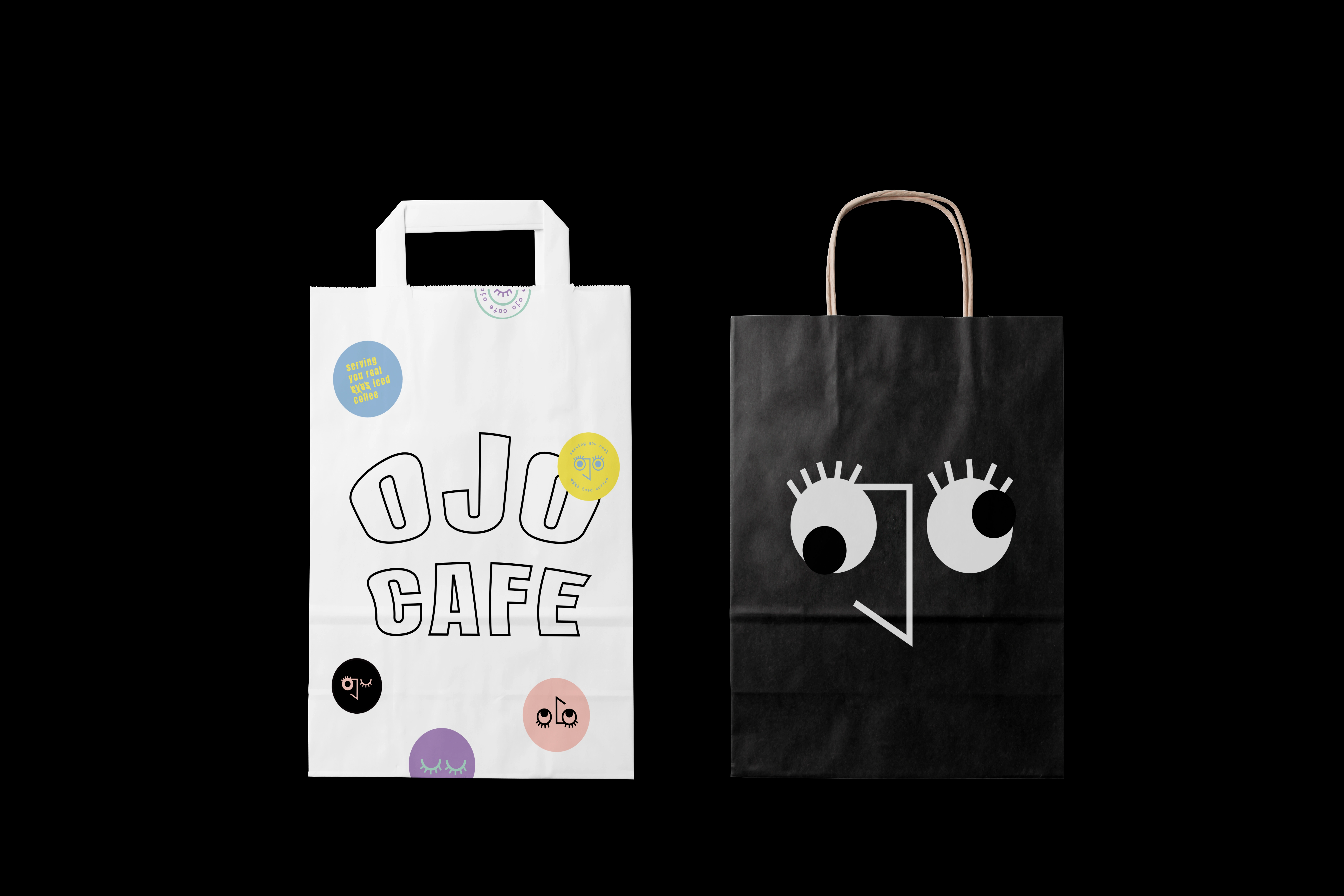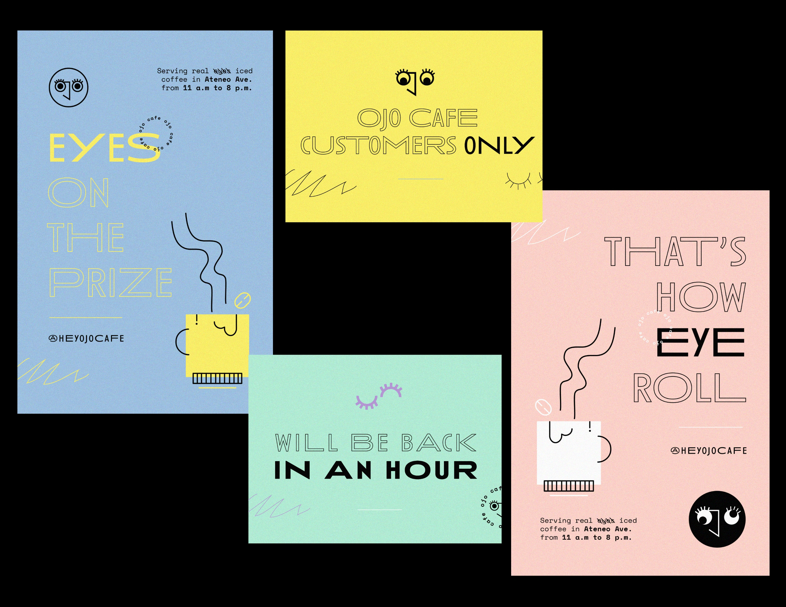 eye — naturally shaped the logo and overall art direction. The brand leans into this coincidence with playful eye motifs and quirky characters. They envision the café as a home for creative people, not just another place to hang out. The identity channels a bold, vibrant, and joyful energy that sets the tone for the brand’s future.