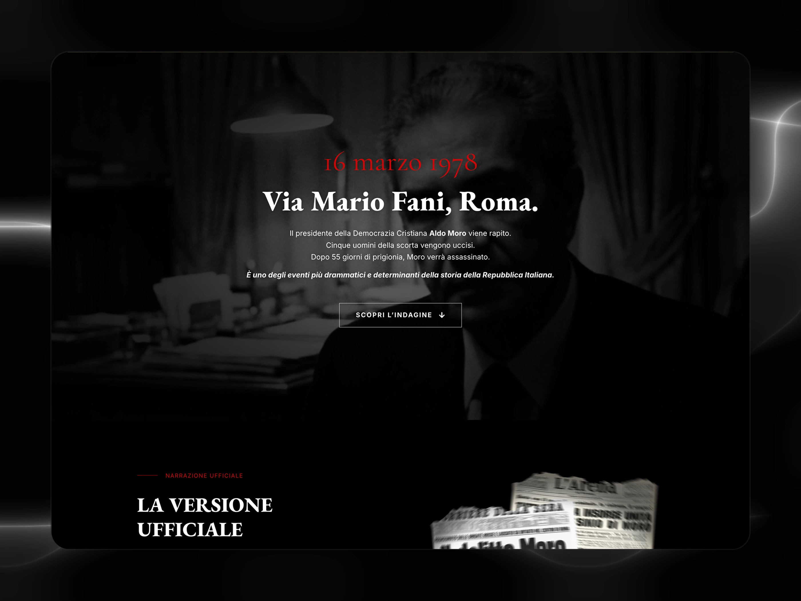 The primary challenge was structuring highly sensitive content while avoiding any "conspiracy-theory" or biased tones. From a UX perspective, it was necessary to design a "step-by-step" narrative: starting with the shared historical facts, presenting the official version with full respect, and only then introducing documented inconsistencies. This required a perfect balance between austere design, information hierarchy, and establishing the author’s moral authority.