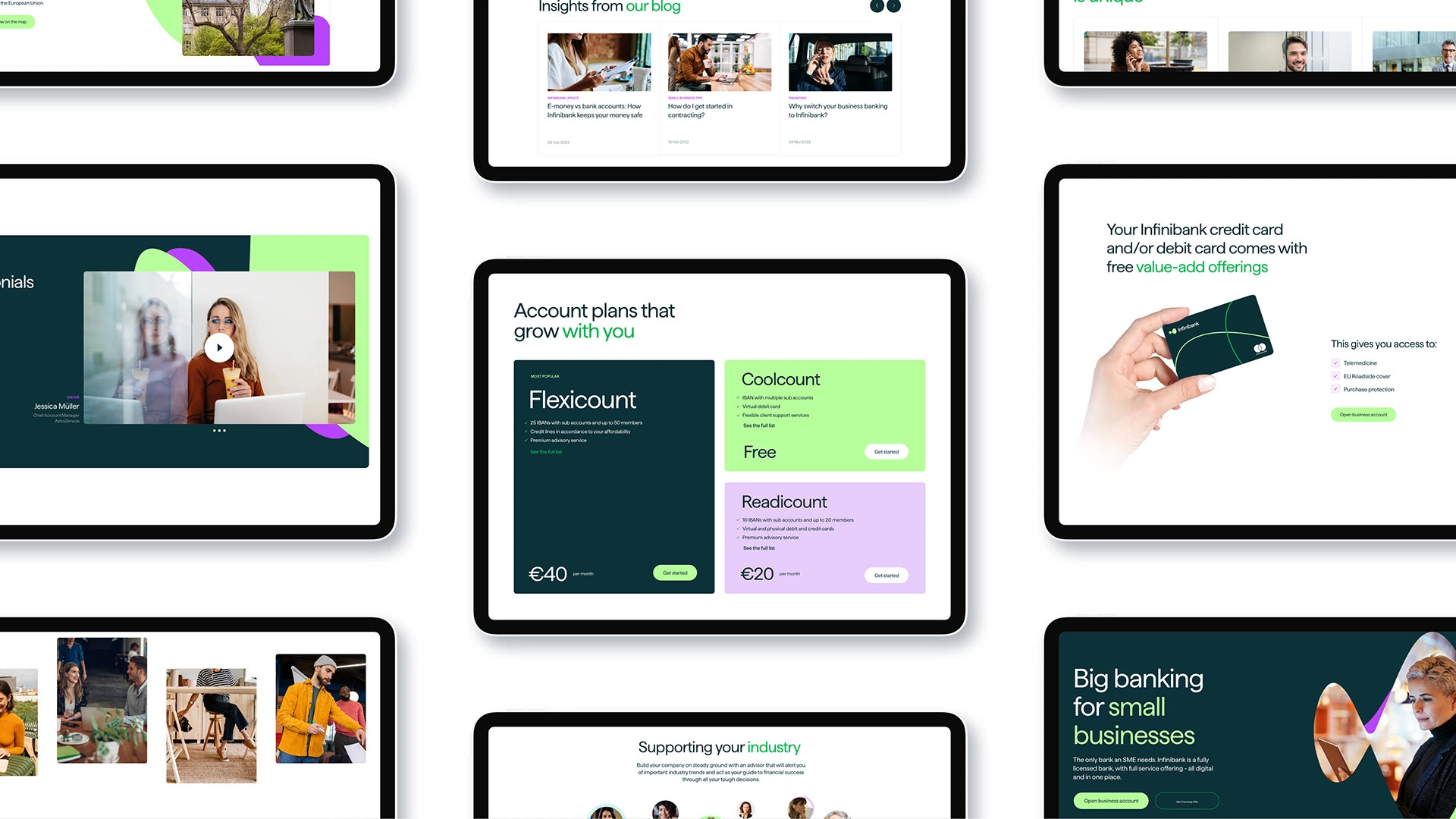 The color palette is composed of calm, cool shades that contrast with vivid and exciting hues. This would allow for establishing a strong visual hierarchy across the digital product ecosystem, while also making it easy to incorporate primary or secondary call-to-actions wherever needed.