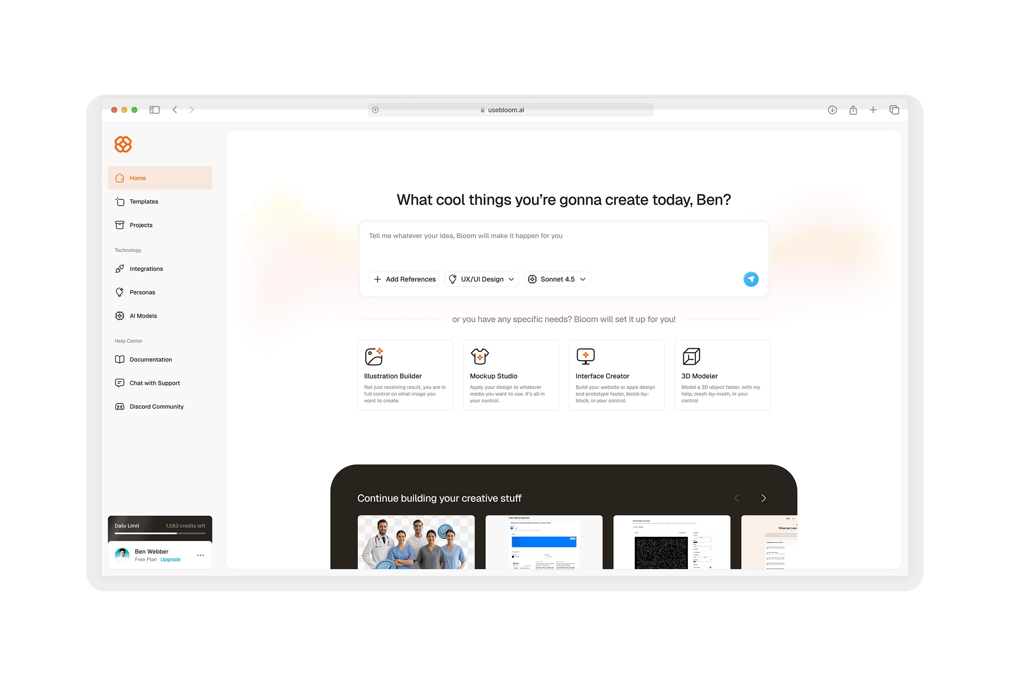 Bloom AI - Homepage Dashboard