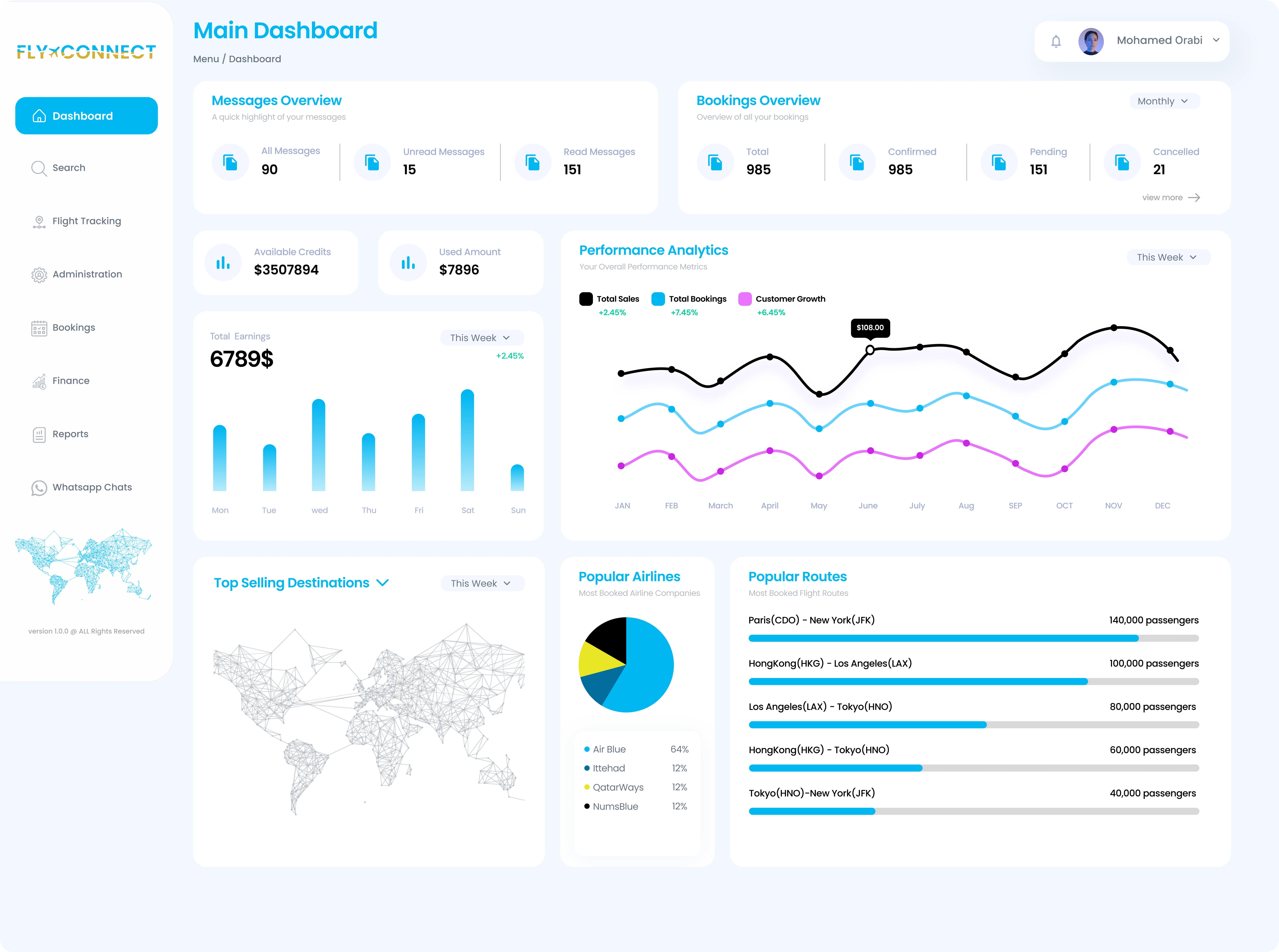 It was an admin dashboard used to manage flight booking based on different KPIS and to book flights. It also helped keep track of ads & sales profit.