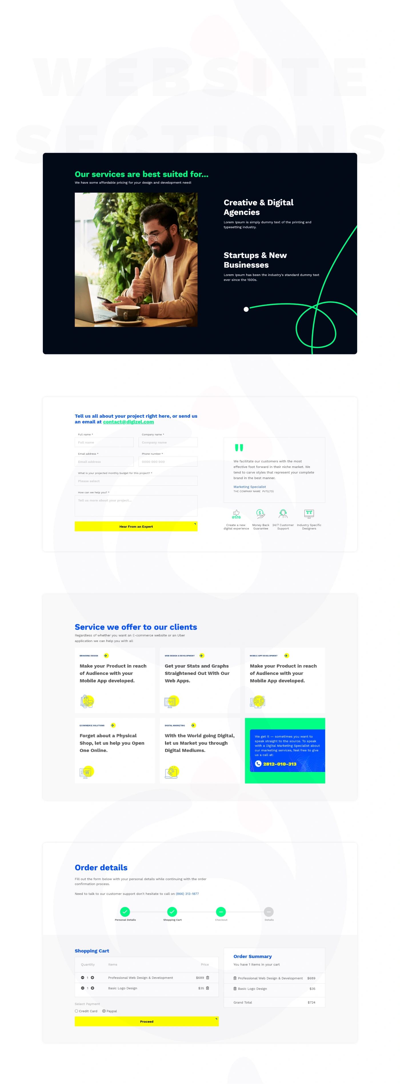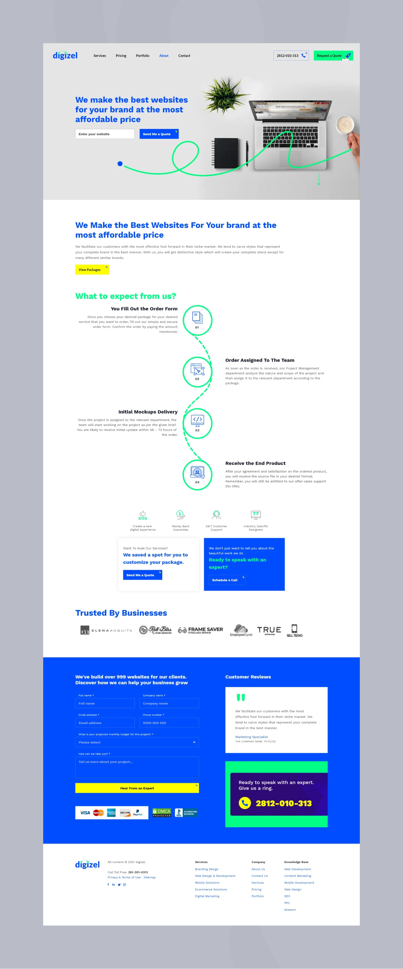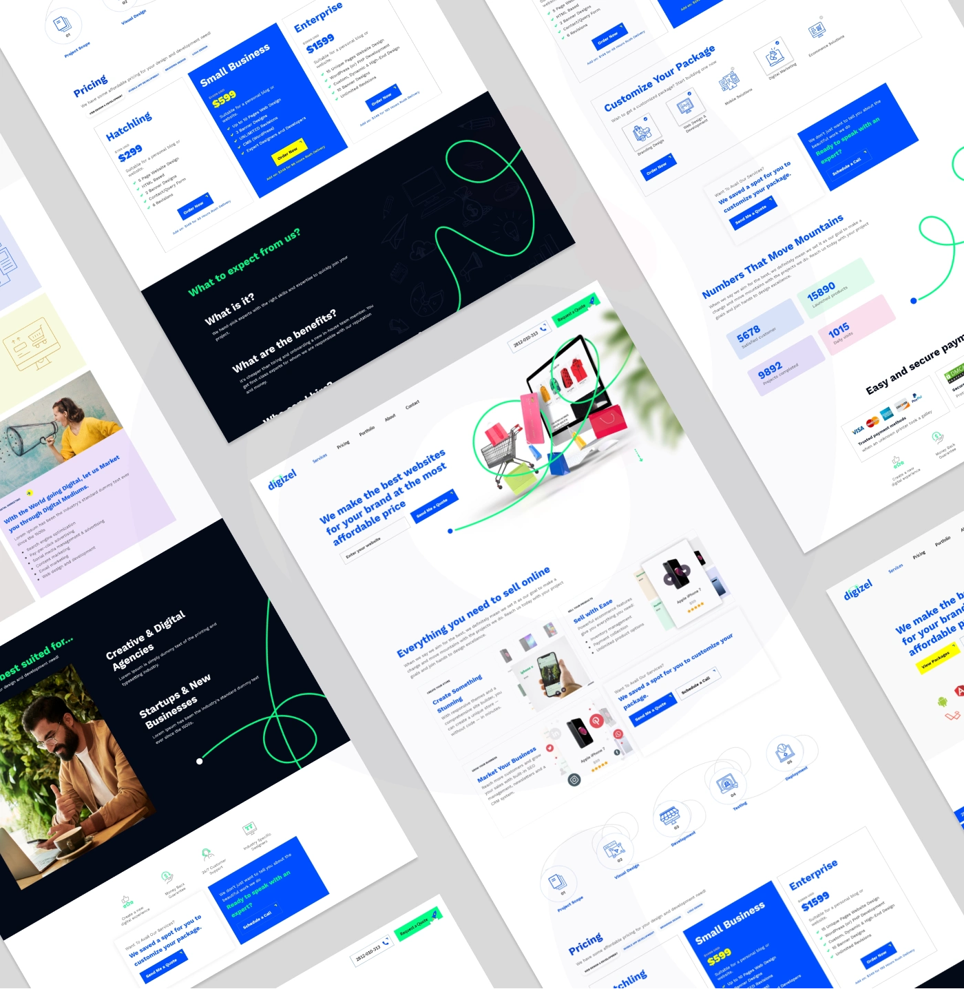 For Digizel, I created a modern and creative website design tailored for a digital design agency. The project emphasized bold visuals, smooth user experience, and responsive layouts that reflect innovation and creativity. The design was structured to highlight the agency’s portfolio, communicate its expertise, and present a professional brand presence that appeals to businesses and startups.