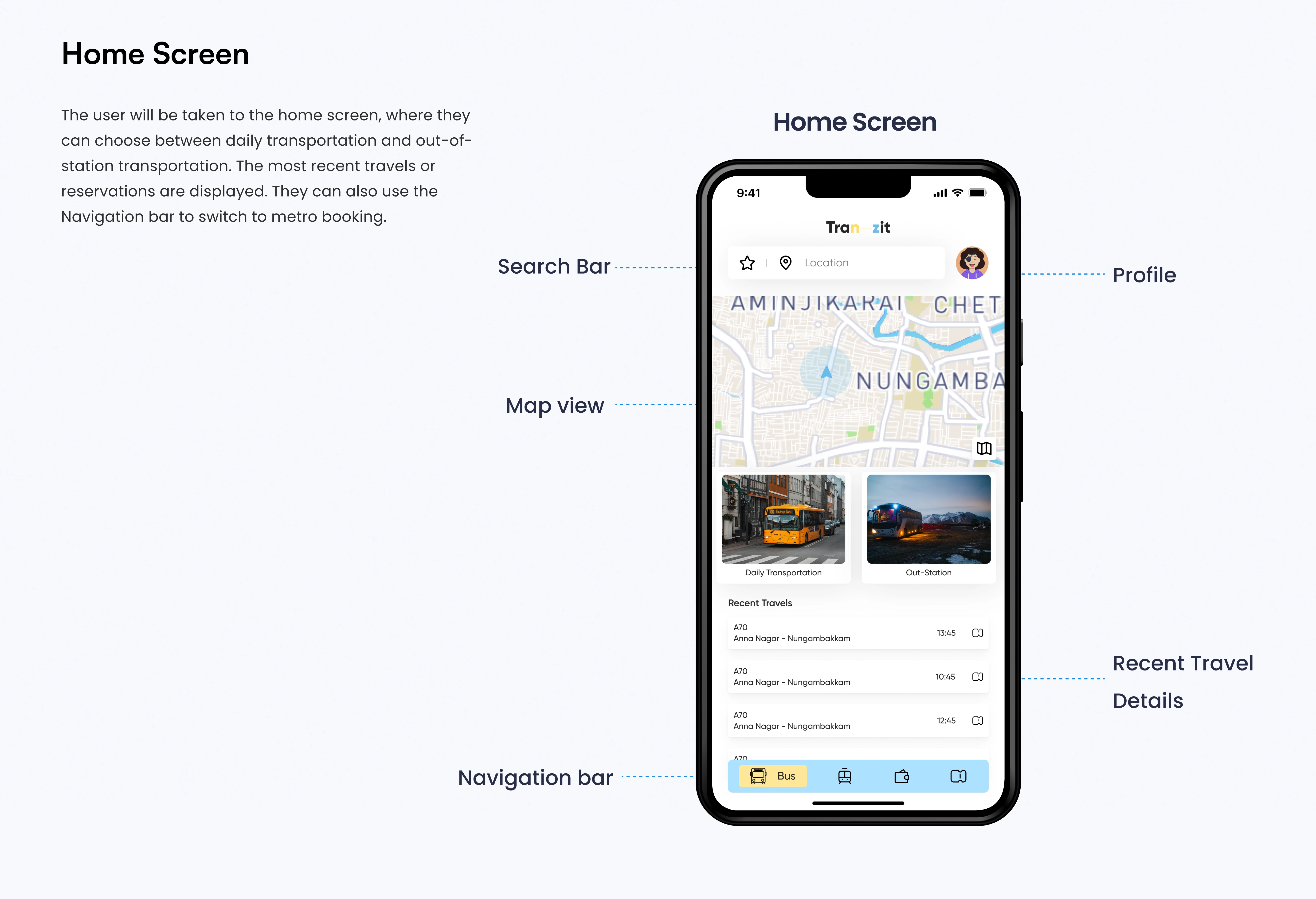 A conceptual app that helps you to check the timings and routes of local buses and metros. Booking tickets has never been this simple.