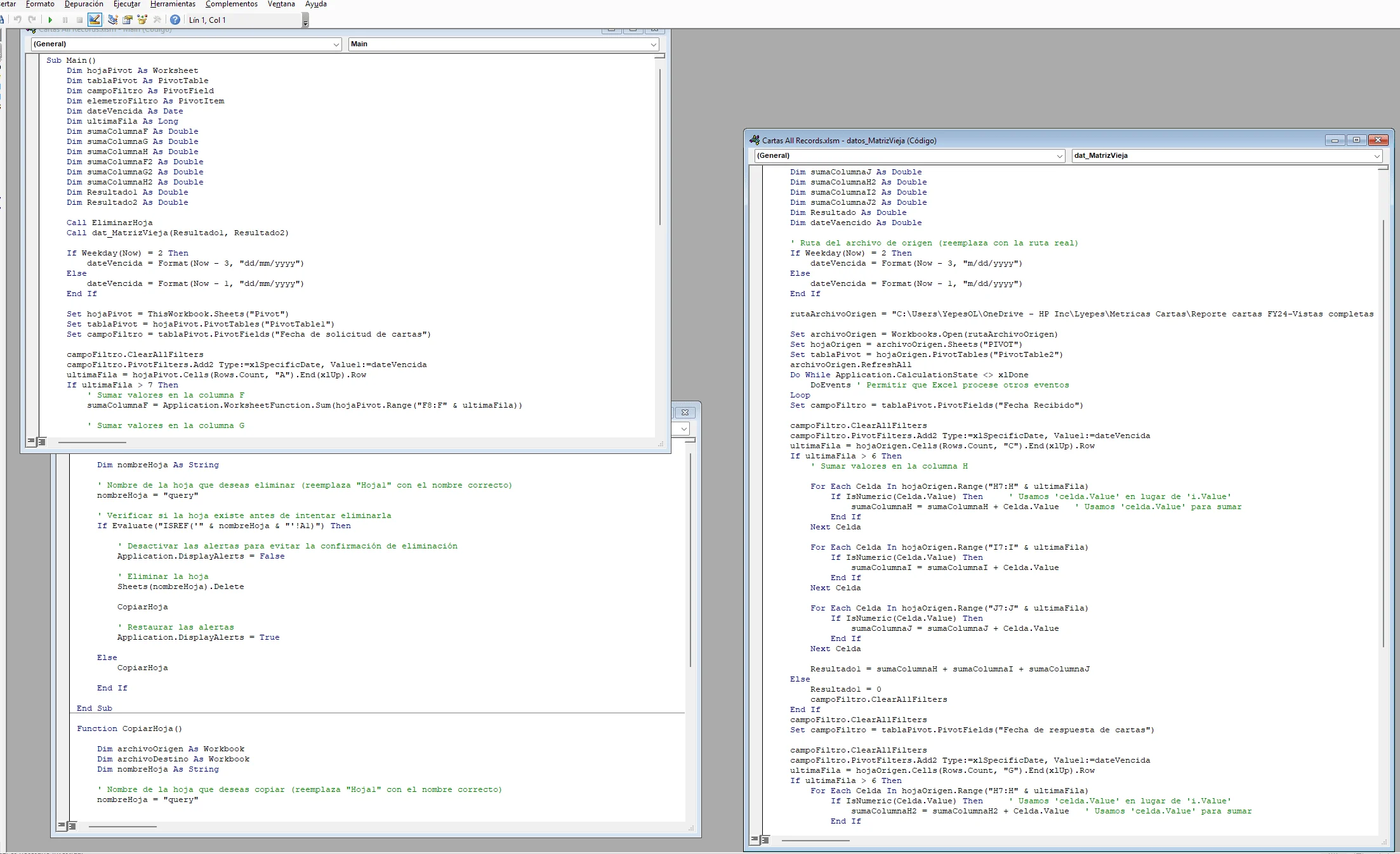 Macro que tiene en cuenta festivos para calcular cartas entrantes, pendientes y salientes del proceso de Sales Compensation.