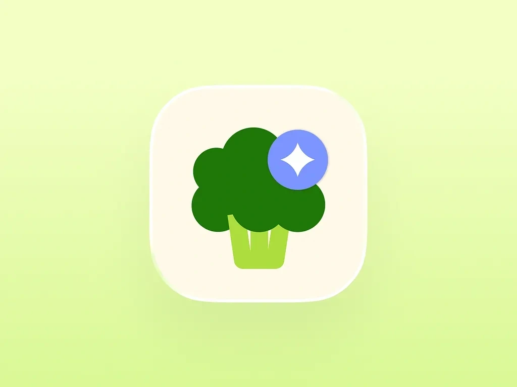 We designed this icon for our AI Product Scanner app project. It centers around broccoli as the main visual, which immediately communicates a healthy diet. The sparkle badge adds a layer of intelligence, while the subtle reflective border gives the whole design a polished, premium quality.