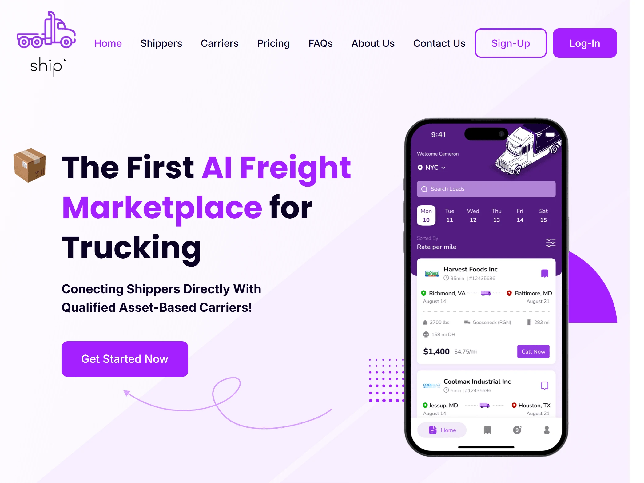 An application for truckers and carriers in USA for transporting load from one city to the other.
