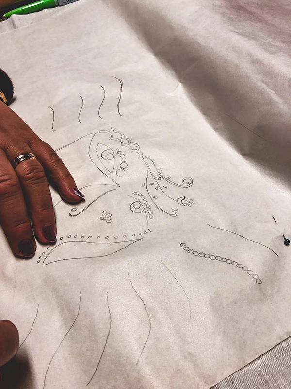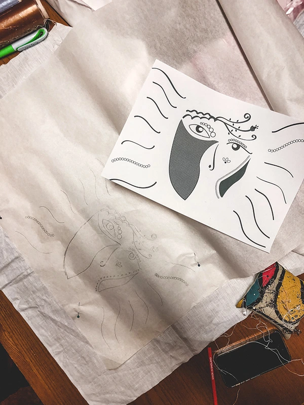 A cover merging culture and creativity: my 80-year-old grandmother transformed my drawing into Tibaldinho embroidery, proving creativity has no age.