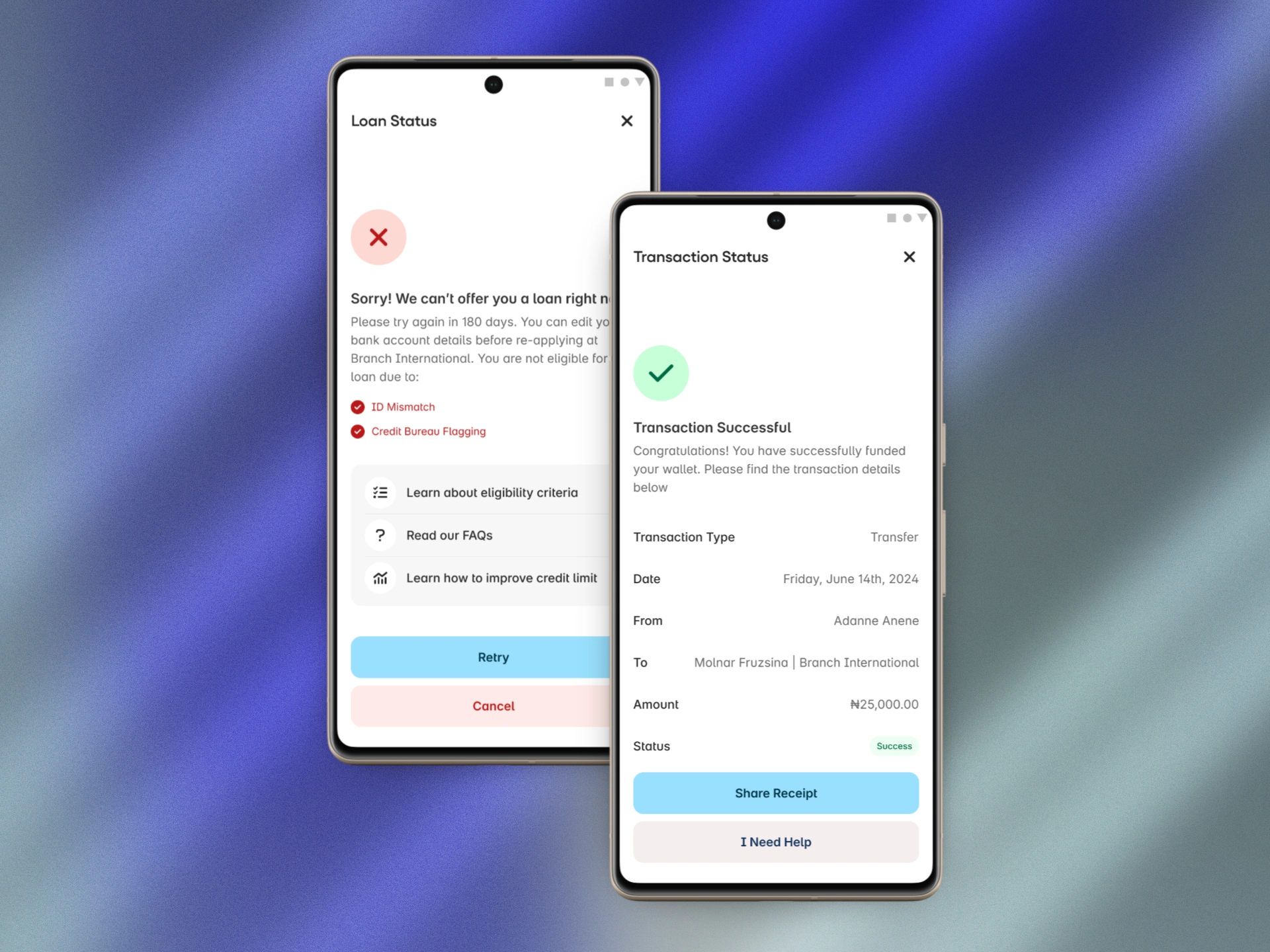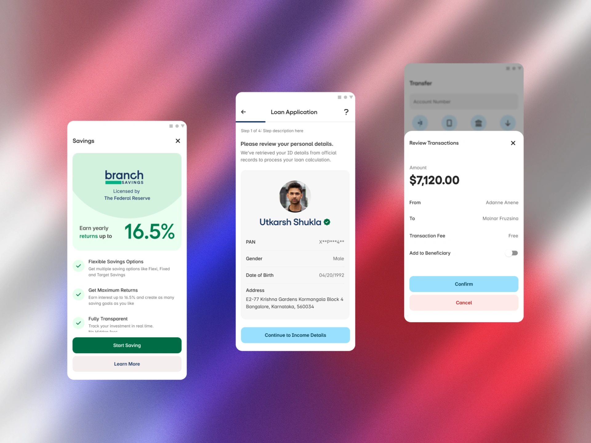 Mobile lending app serving US, India, Kenya, Nigeria had one-size-fits-all onboarding: 43% drop-off rate. Each market needed different trust signals and education levels. I conducted user research across all 4 markets, designed adaptive onboarding flows, reduced required fields 40% with progressive disclosure, and created market-specific trust elements. Built component library allowing customization without design fragmentation. Result: User drop-off reduced 43%, MRR increased 25%, time-to-first-loan cut from 8 to 4.5 minutes, market completion rates 68-73%, support tickets down 57%, first-month retention improved from 34% to 52%.