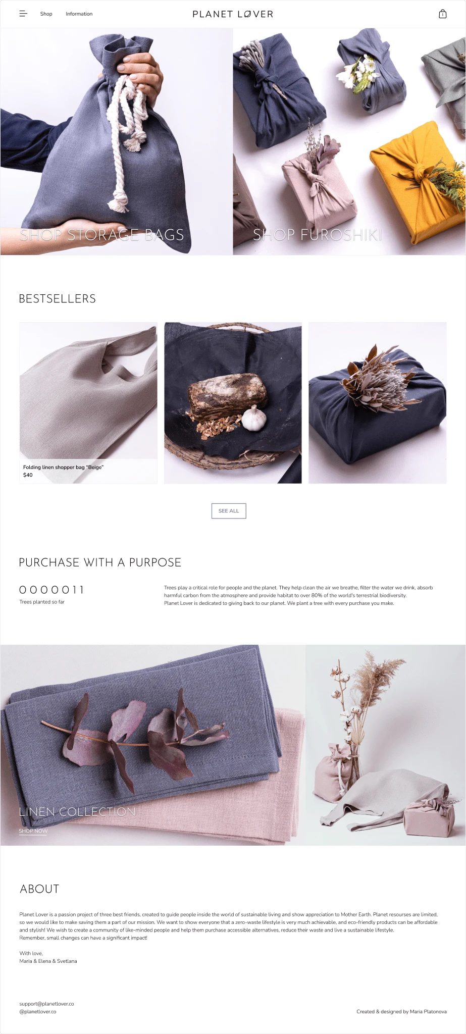 I began research by identifying the main three competitors in the Canadian eco-friendly market and comparing their online stores. I was keen to identify common features across the sites and spot opportunities for Planet Lover to be unique. The competitors I decided to focus on were Olsen + Olsen, Zero waste mvmt, and DemainDemain. With each providing slightly different products but similar customer demographics. Hero section with a call to action, bestsellers and featured collection on the homepage were common features on all three websites. In addition, they all included a cart, profile, store information and newsletter form in the footer.