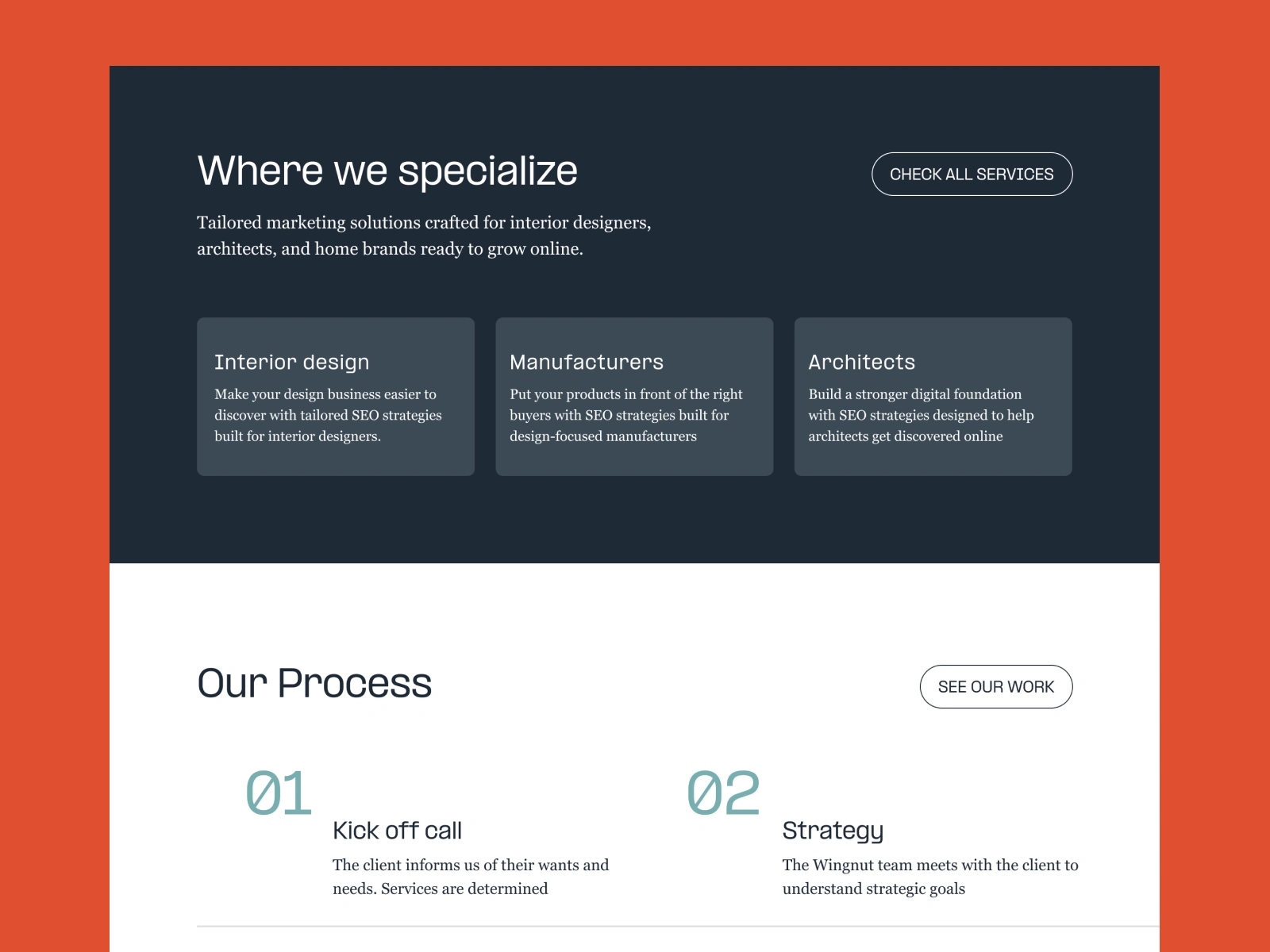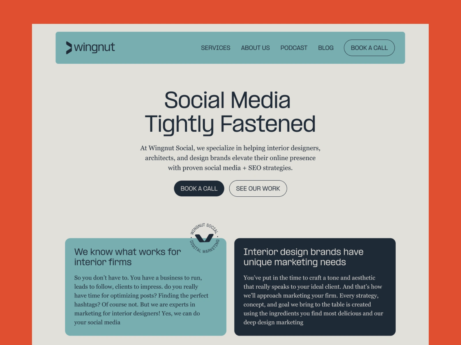 Wingnut Social is a marketing agency that helps interior designers grow their brands through strategy, content, and social media. The team approached us to redesign their website with a modern, confident, and visually engaging online presence. one that reflects their authority in the industry while staying approachable and creative.