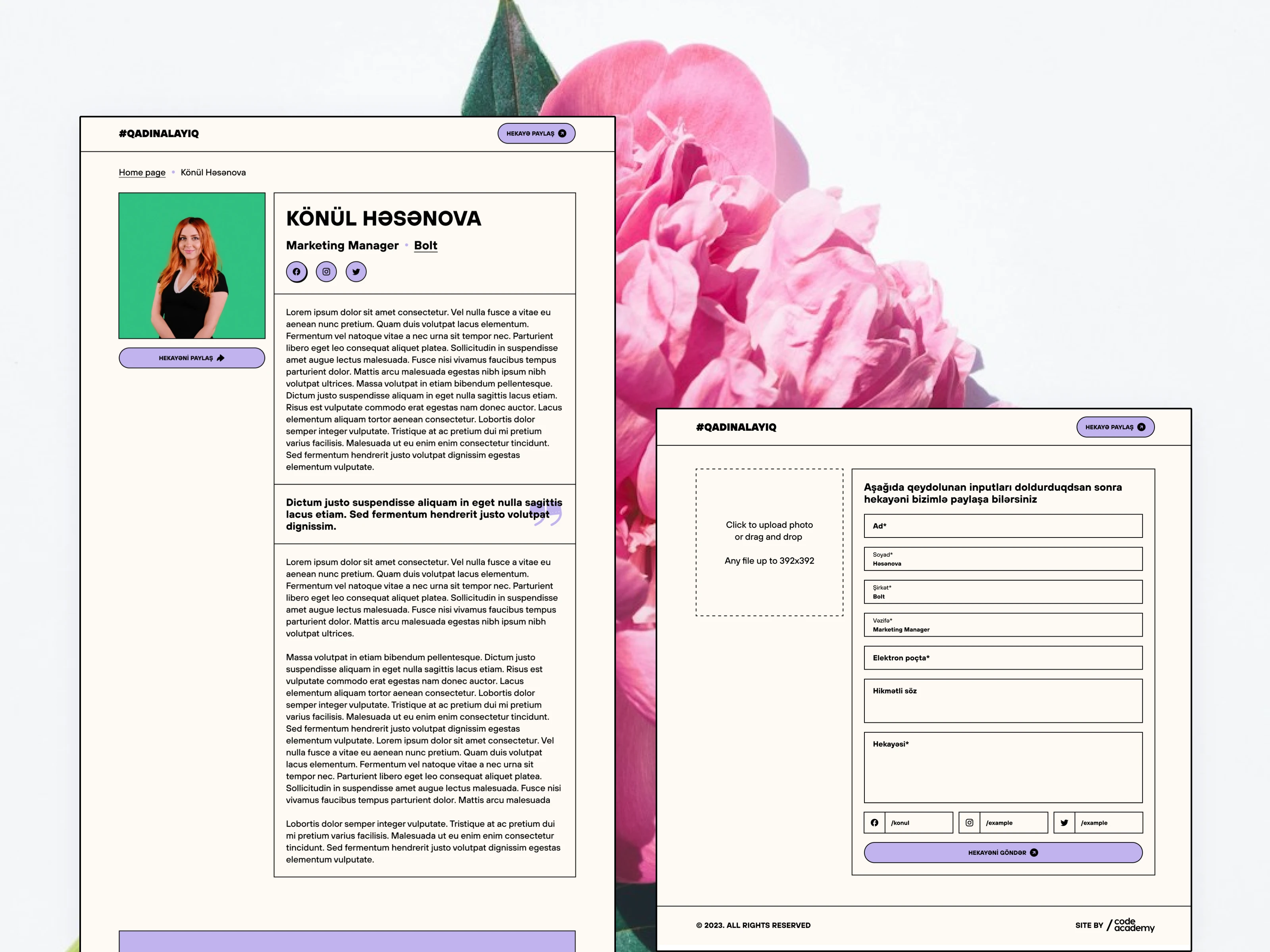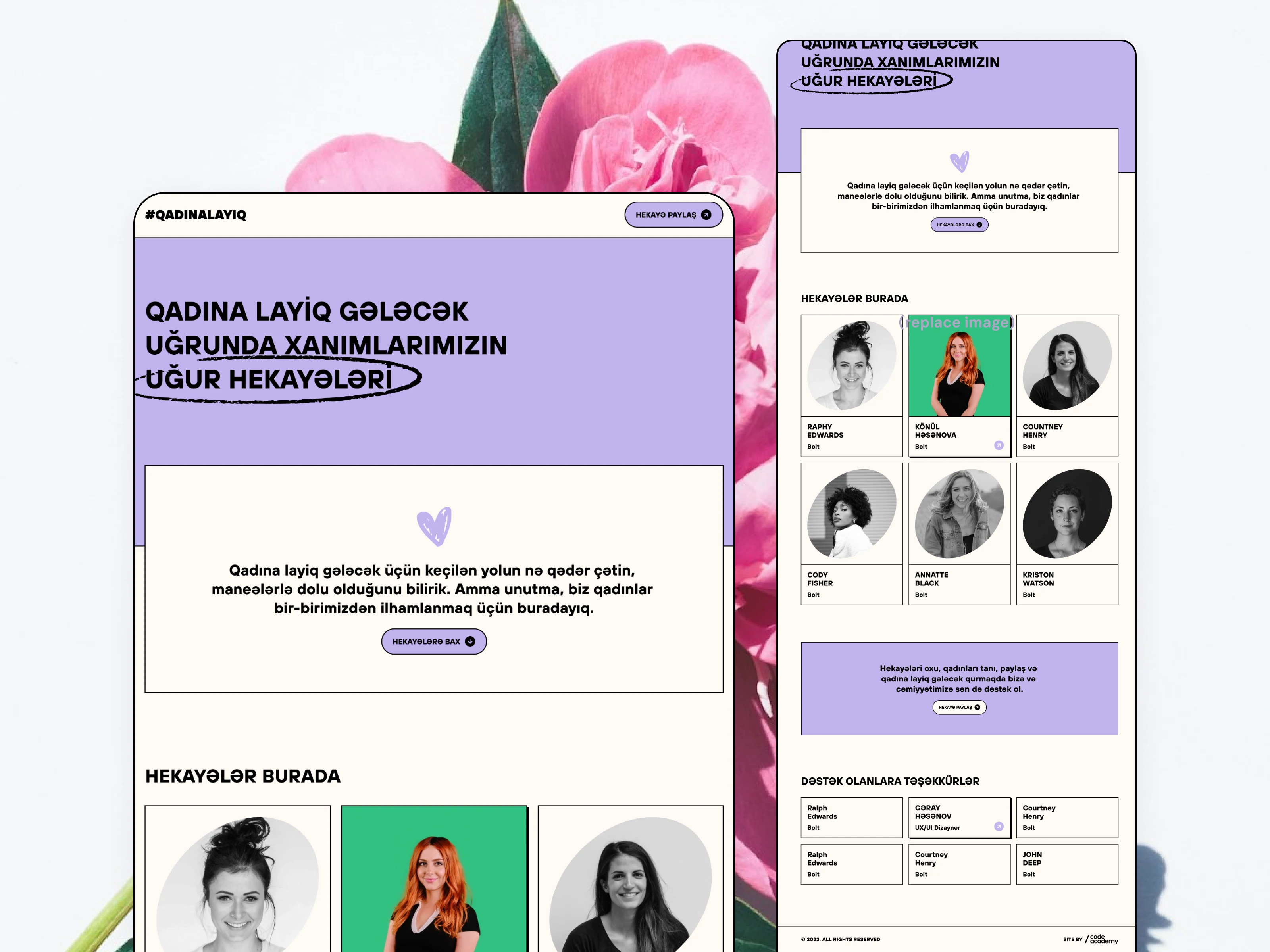 The #Qadinalayiq project is a website created by Code Academy on March 8, 2023. Its main goal is to share the inspiring stories of successful women and highlight their achievements. The platform also gives space for other women to share their own stories.