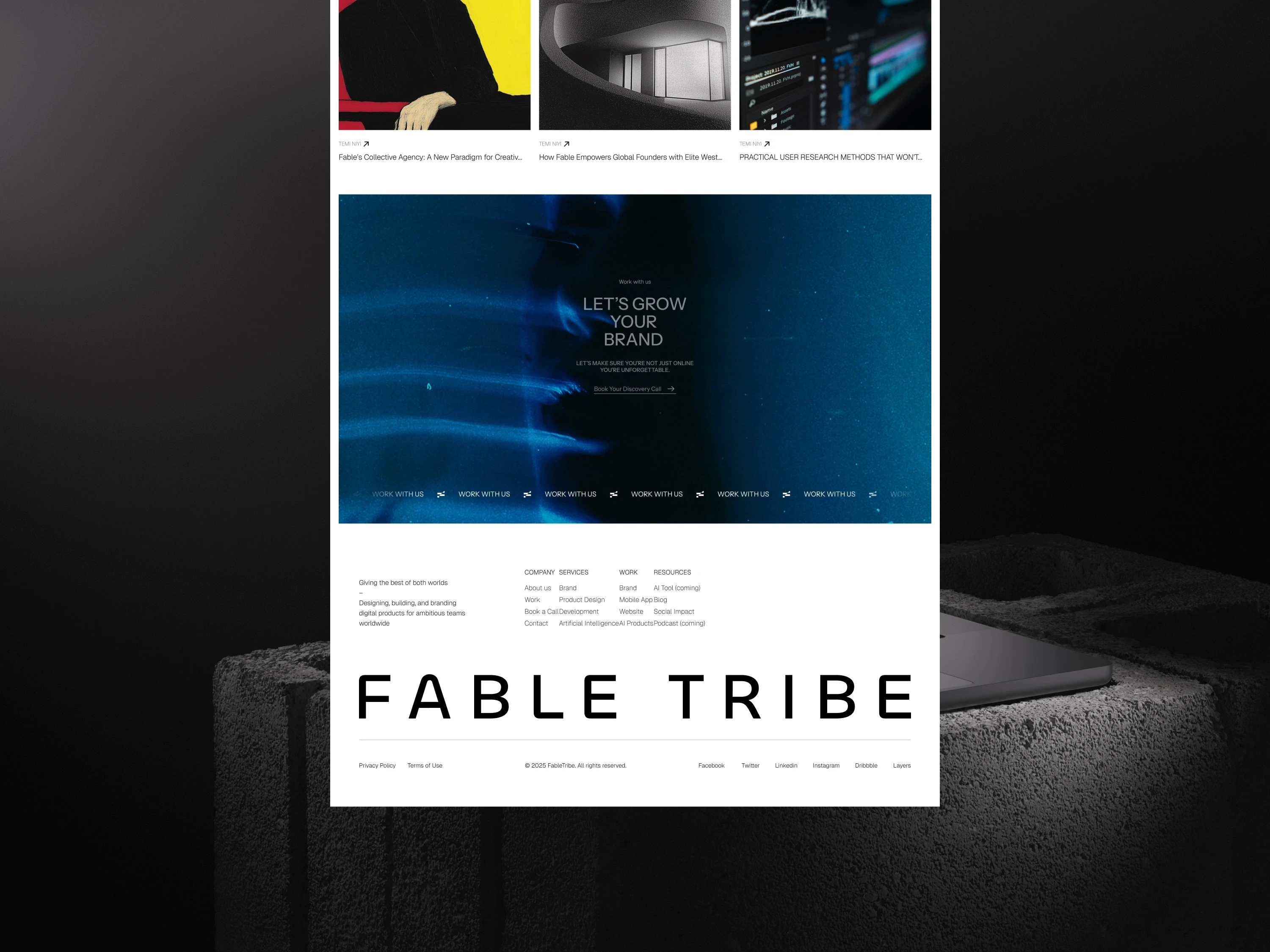 Designed and built the Fable site in Framer. Smooth scroll stories, bold type, and tiny interactions lift the brand and spark fresh project enquiries.