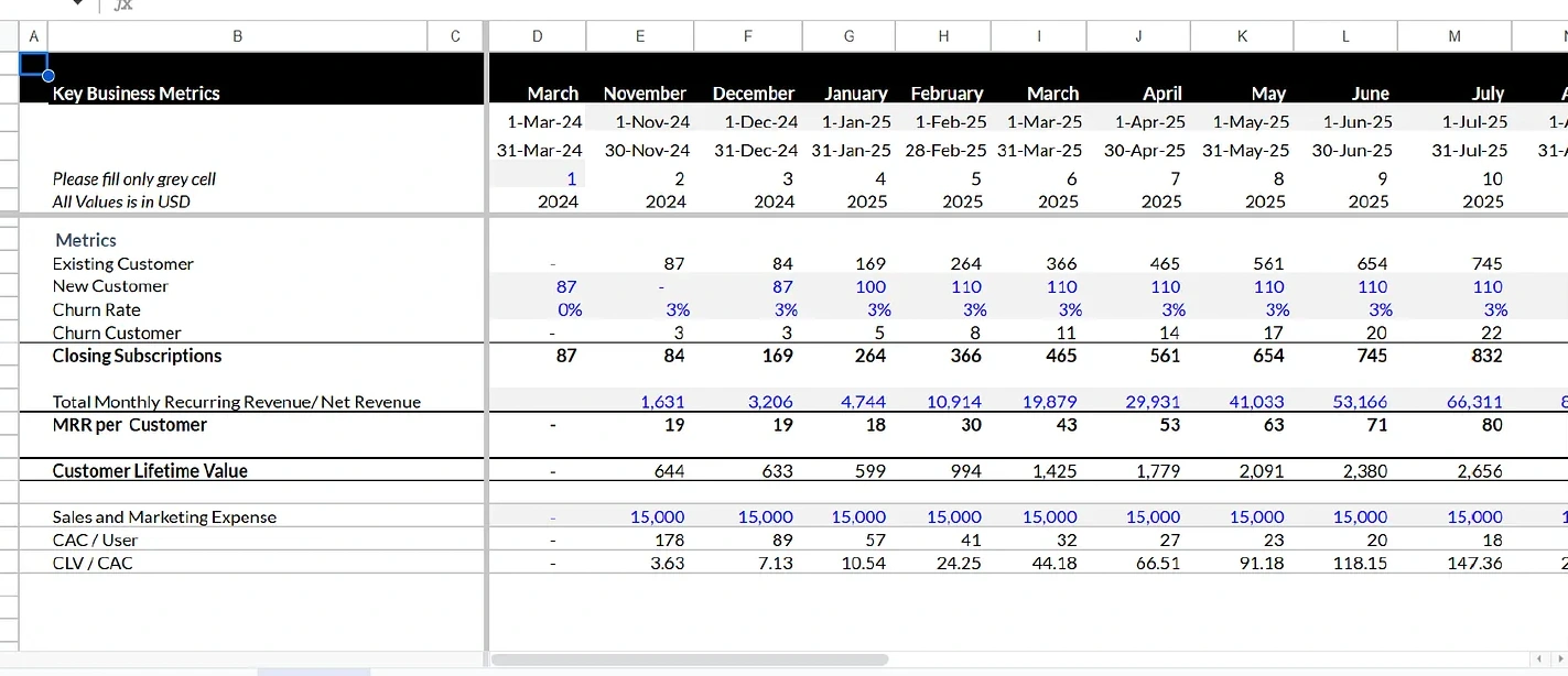Built model projecting MRR, CAC/LTV, churn & marketing ROI Enabled leadership to understand revenue drivers; drove investor interest & smarter budget allocation