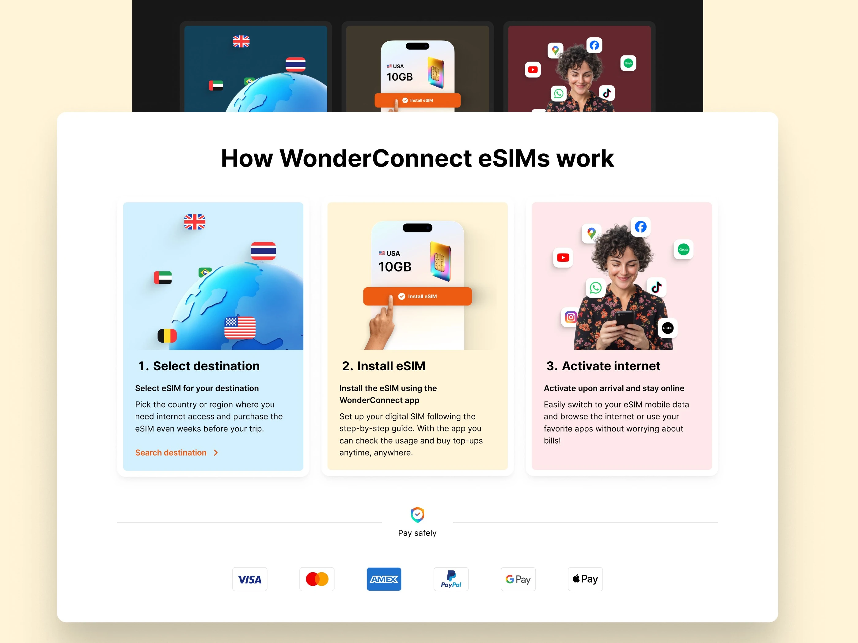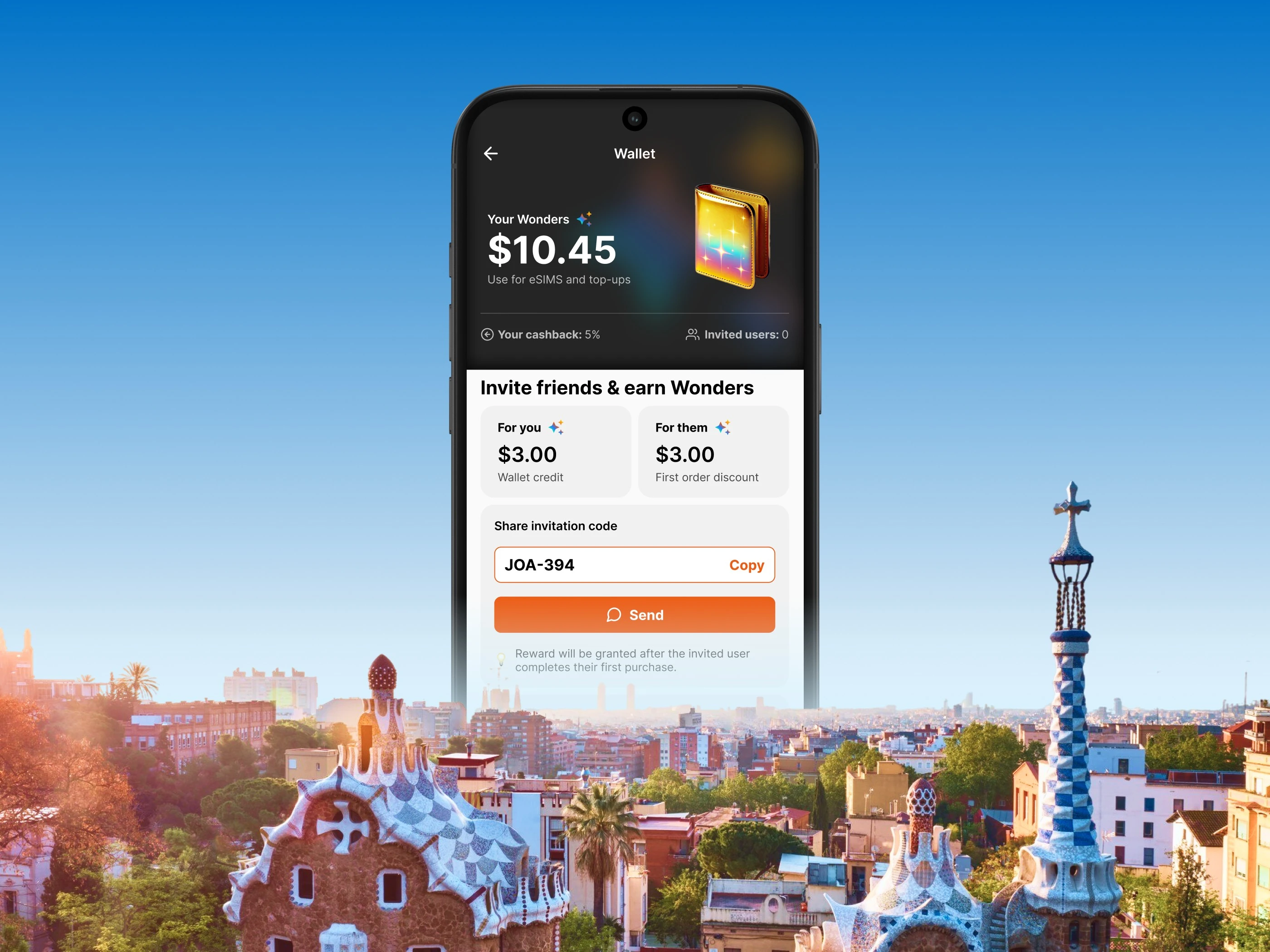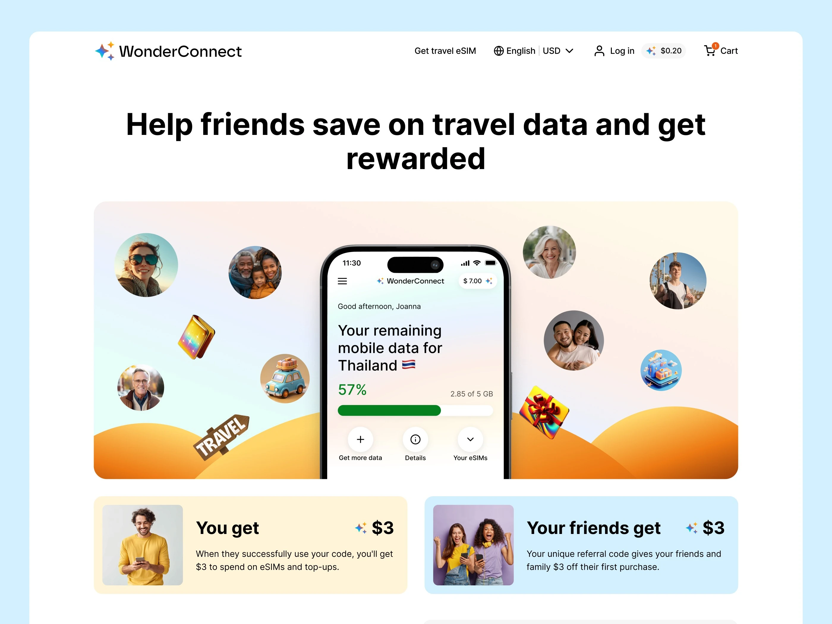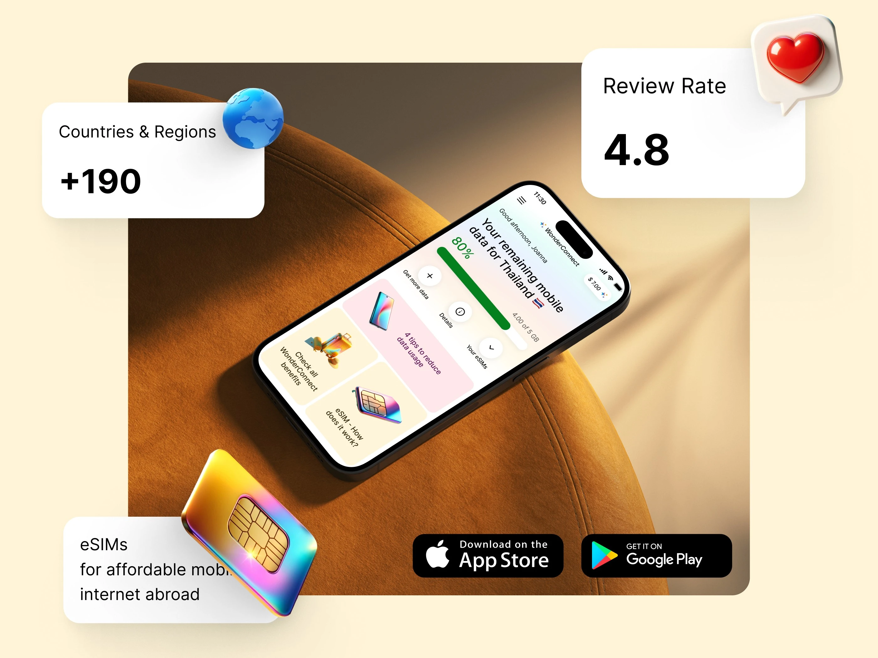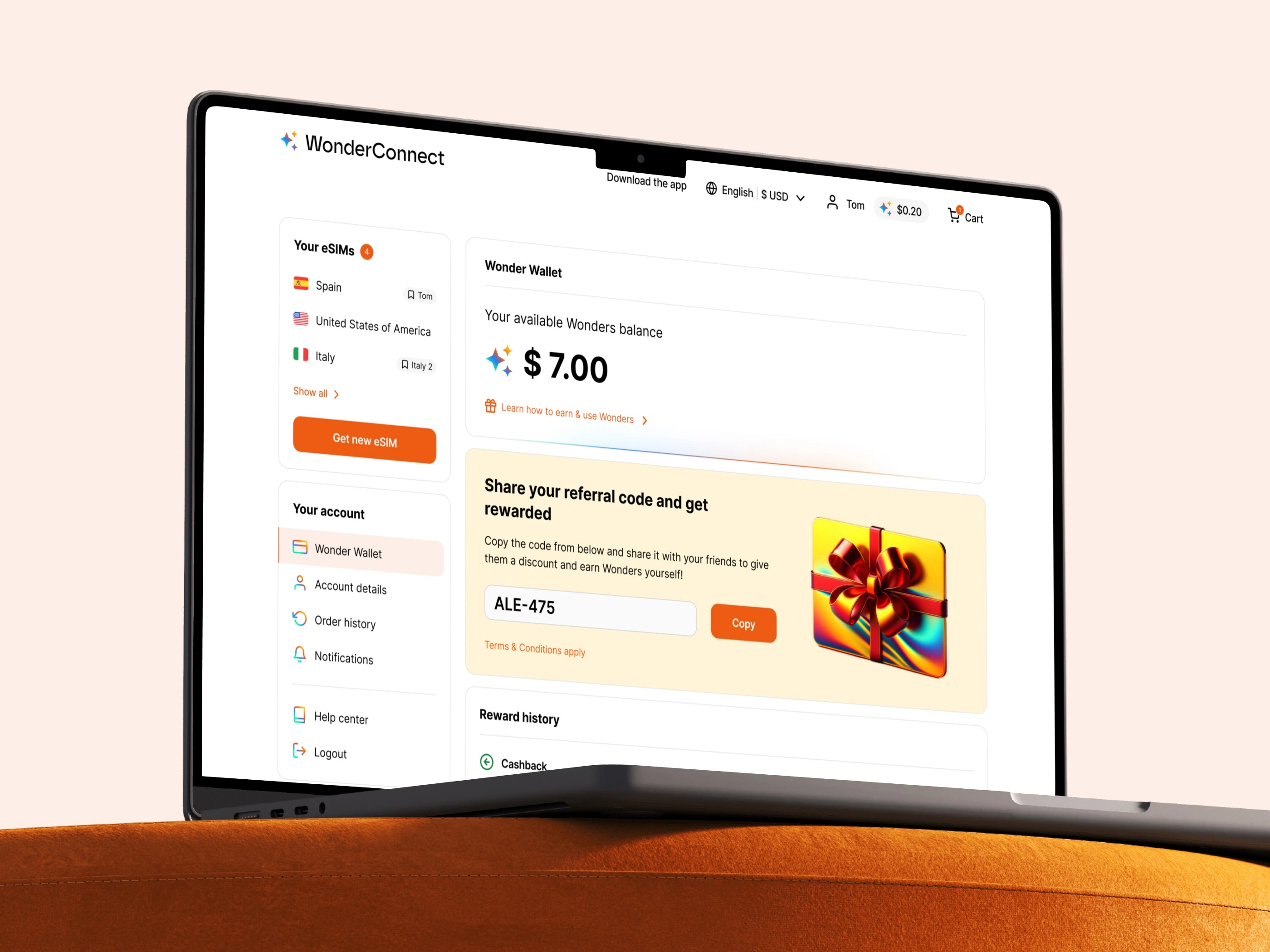 Most travel tech feels clinical and "blue-and-white." When the founder of WonderConnect approached the team, the mission was to do the opposite: make getting an eSIM feel a bit like magic. We wanted to design an experience that feels as exciting as the trip itself, transforming a boring utility into a premium travel companion.