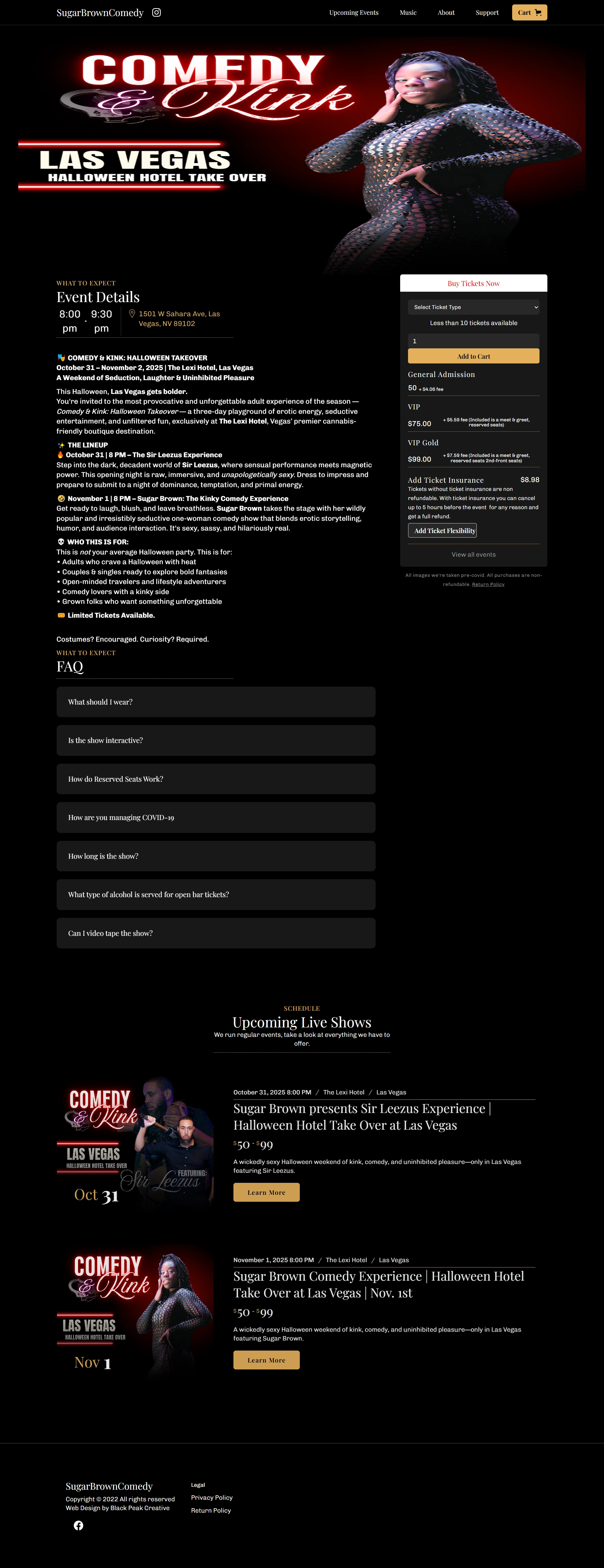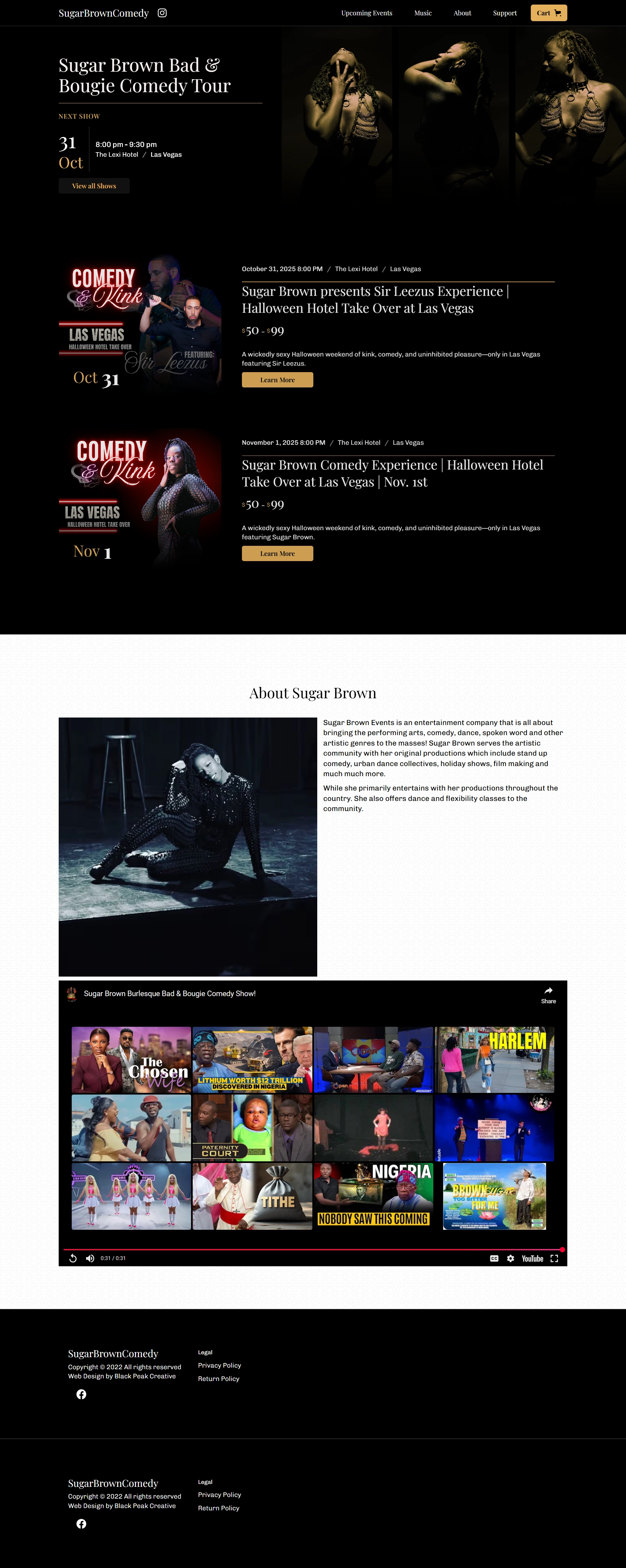 Sugar Brown Events is a bold entertainment brand known for producing original comedy shows, urban dance collectives, holiday specials, and immersive live performances across the U.S. The client needed a dynamic, user-friendly website that could both showcase upcoming events and simplify ticket purchasing for their growing audience.