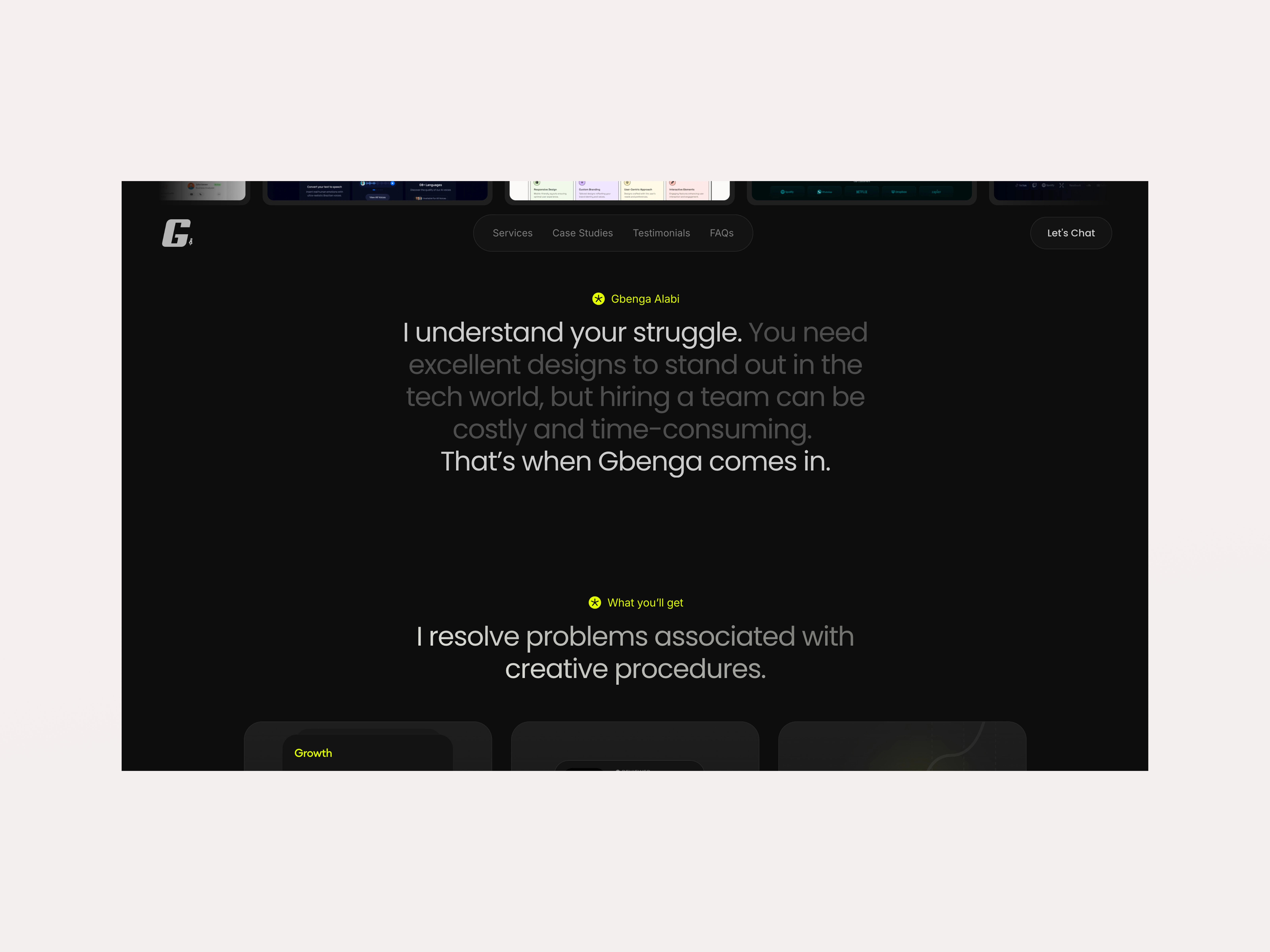 Gbenga Alabi is a multidisciplinary product designer and digital strategist looking to showcase his work, design philosophy, and thought leadership in an interactive, modern, and highly functional digital portfolio. The goal of this project was to build a visually striking, fully responsive, and highly interactive portfolio website that reflects Gbenga’s unique design style and professional capabilities.