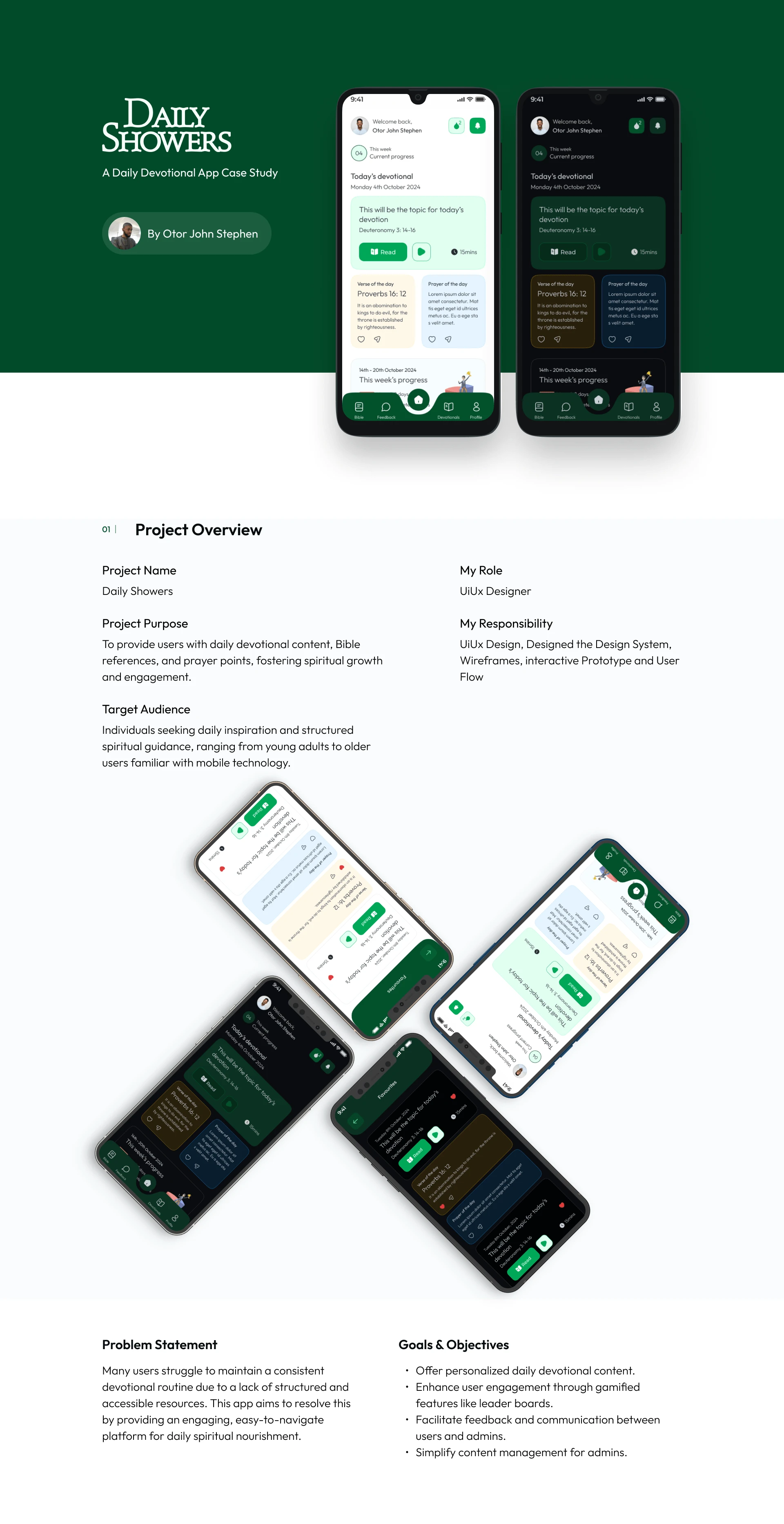 Daily Showers is a daily devotional application that helps to provide users with daily devotional content, bible references, and prayer points.