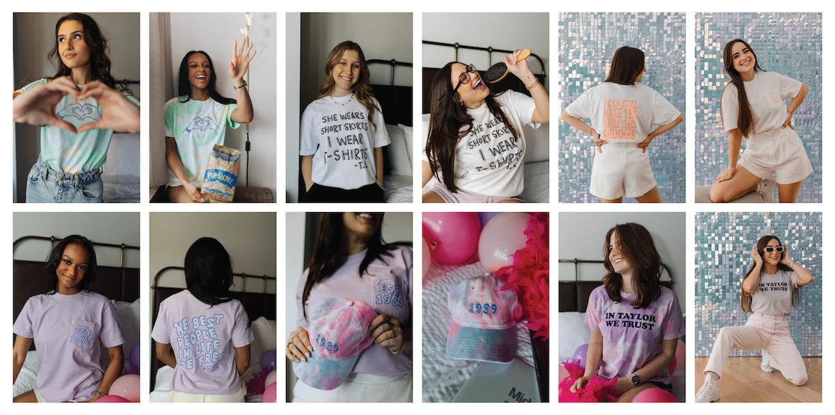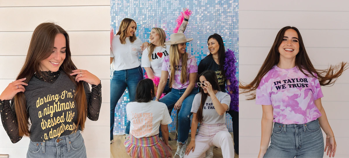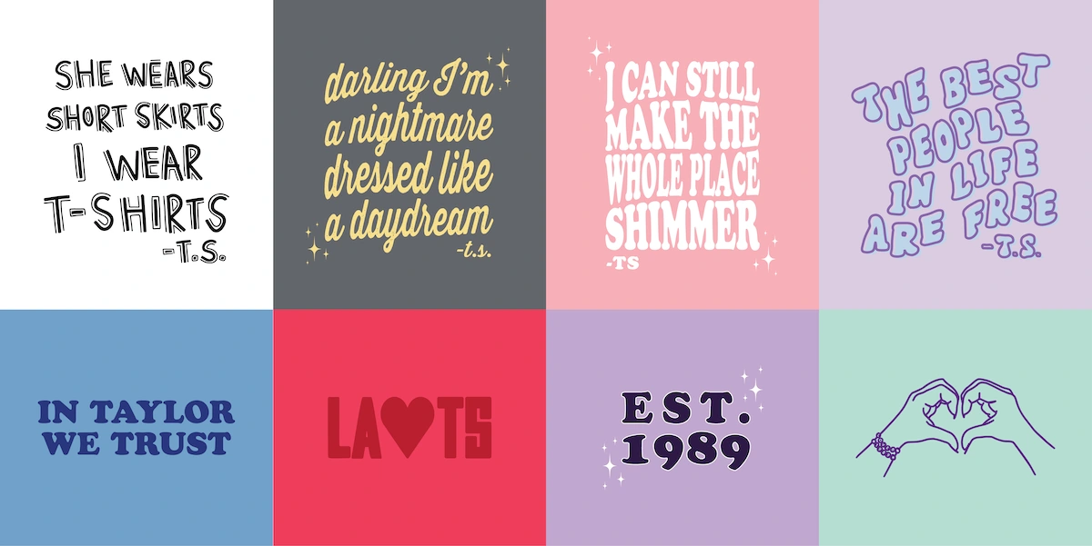 Capitalizing on the Eras Tour's peak popularity, Sweet Baton Rouge launched exciting t-shirts for fellow Swifties. I selected iconic quotes from various eras to appeal to a wide audience. Employing a blend of hand-illustrated typography and manipulated typefaces for a wavy effect, we released two distinct collections in 2023 and 2024.
