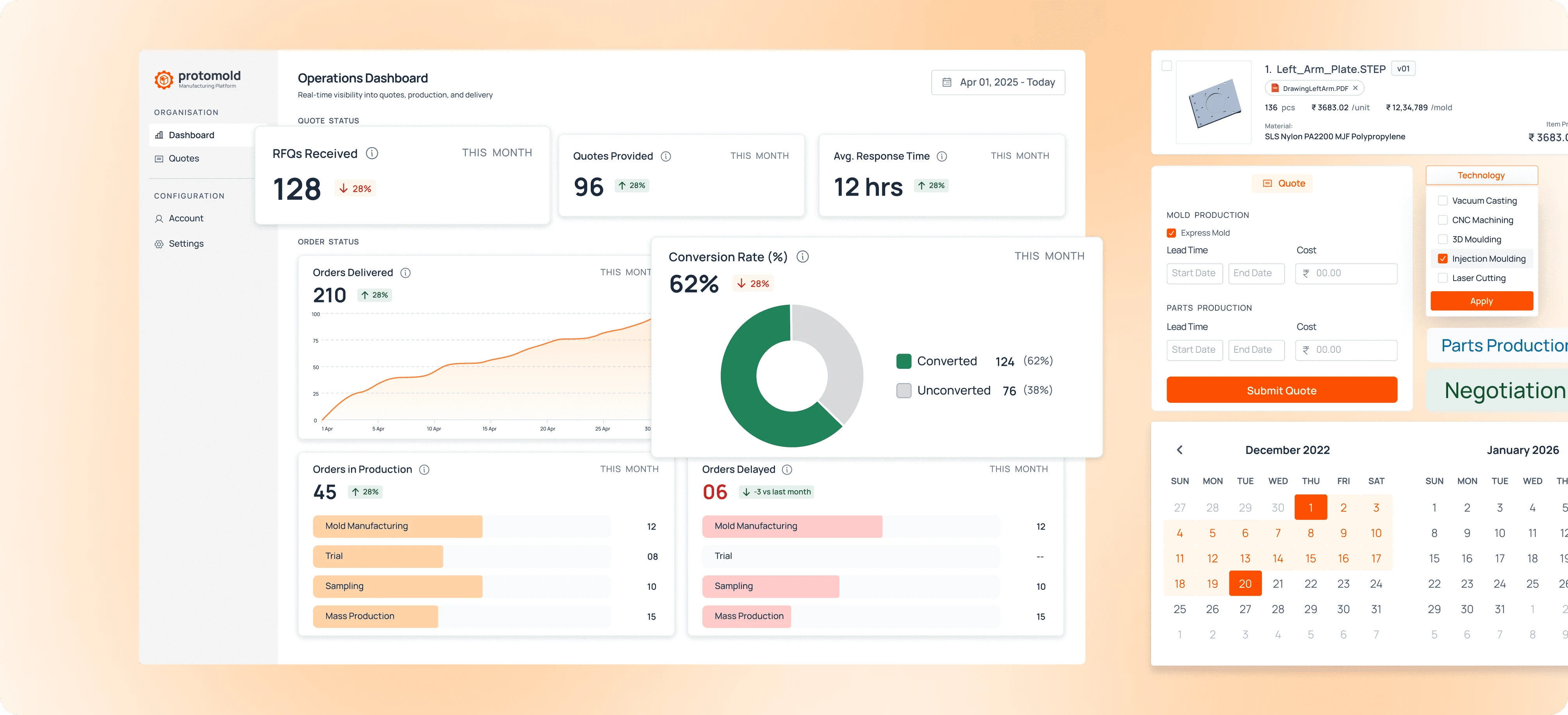 Admin Side – Dashboard, Quotes Tables & Part Review