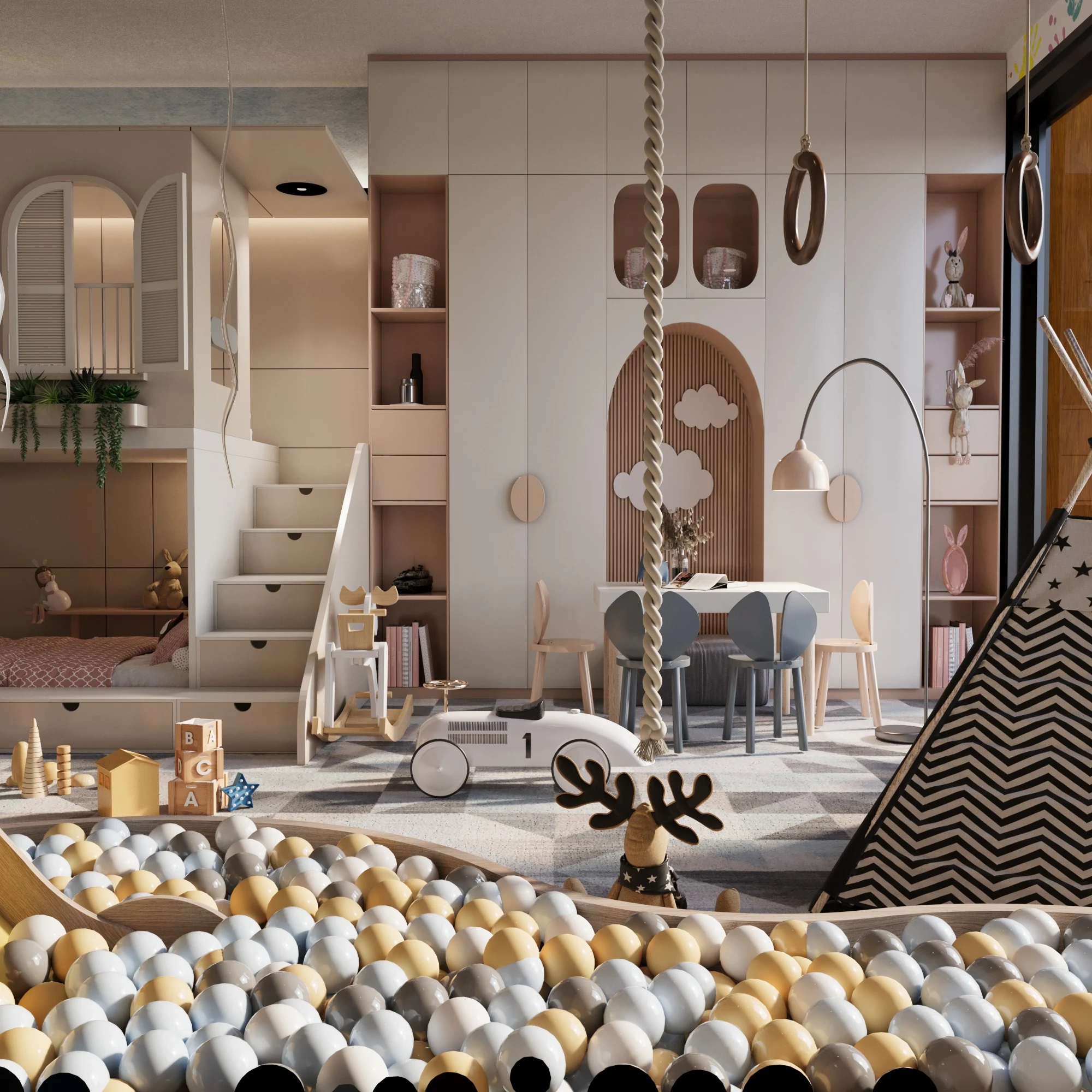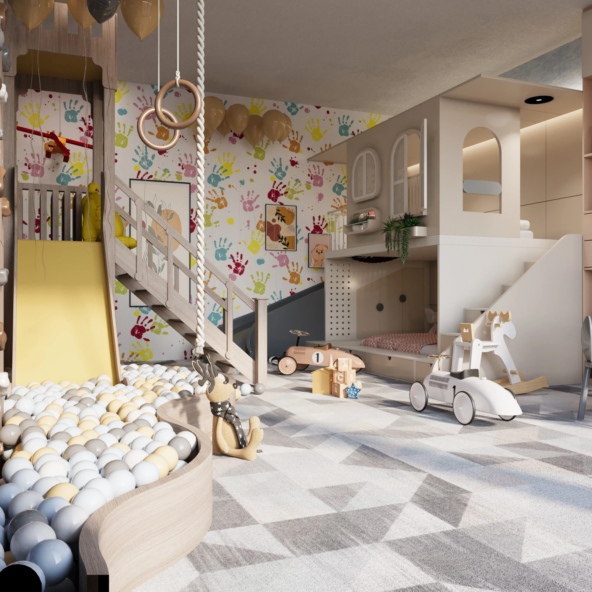 This project involved designing the interior of the client's kids' playroom or game room, as their children were 3 and 5 years old.