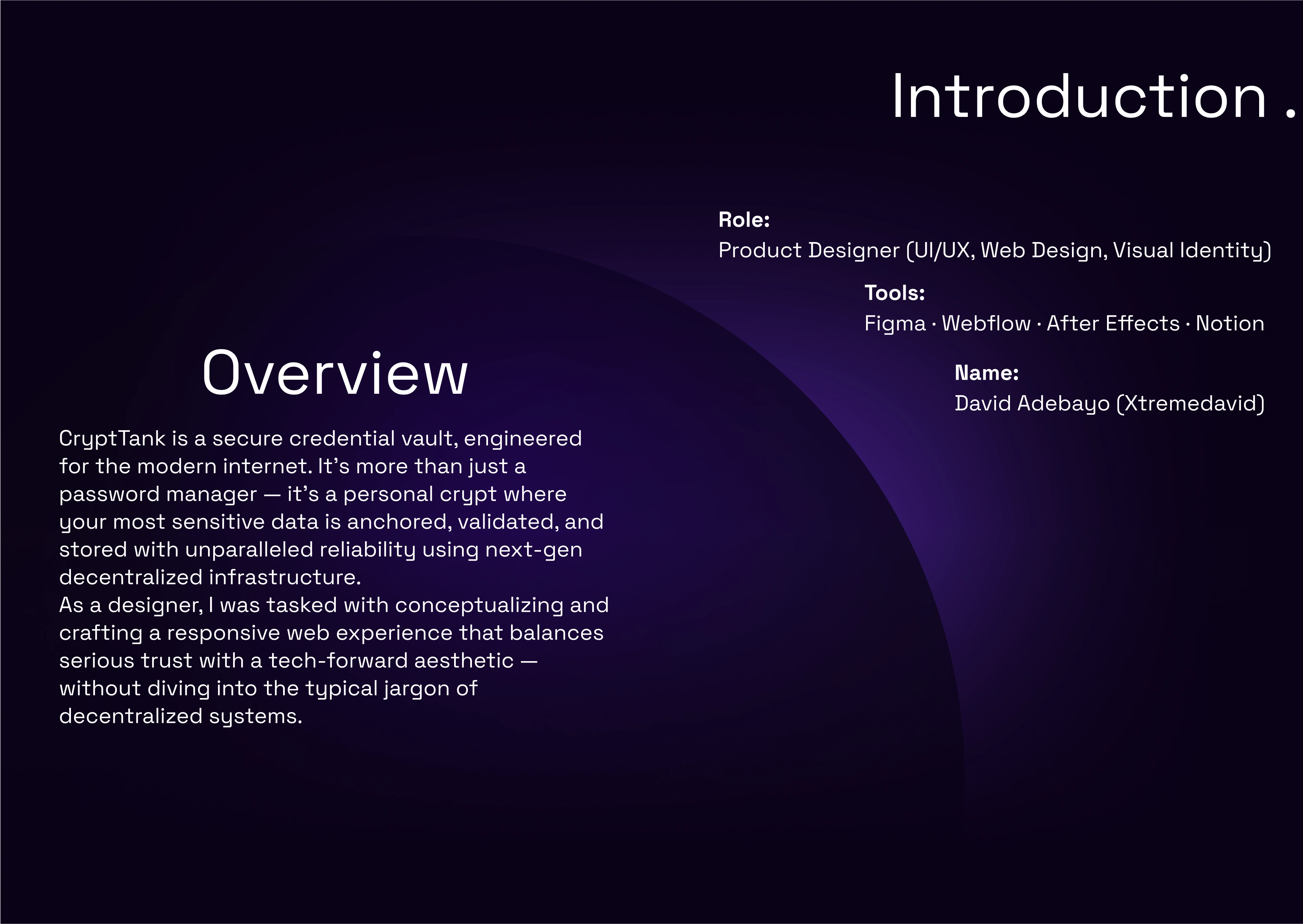 I designed the CryptTank landing page from wireframing the user flow, crafting a modern, trust-building UI, to exporting responsive, animation-ready pages.