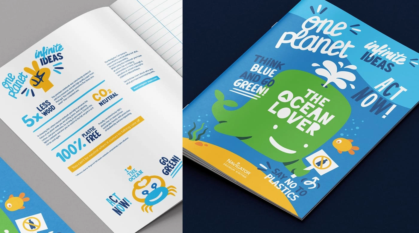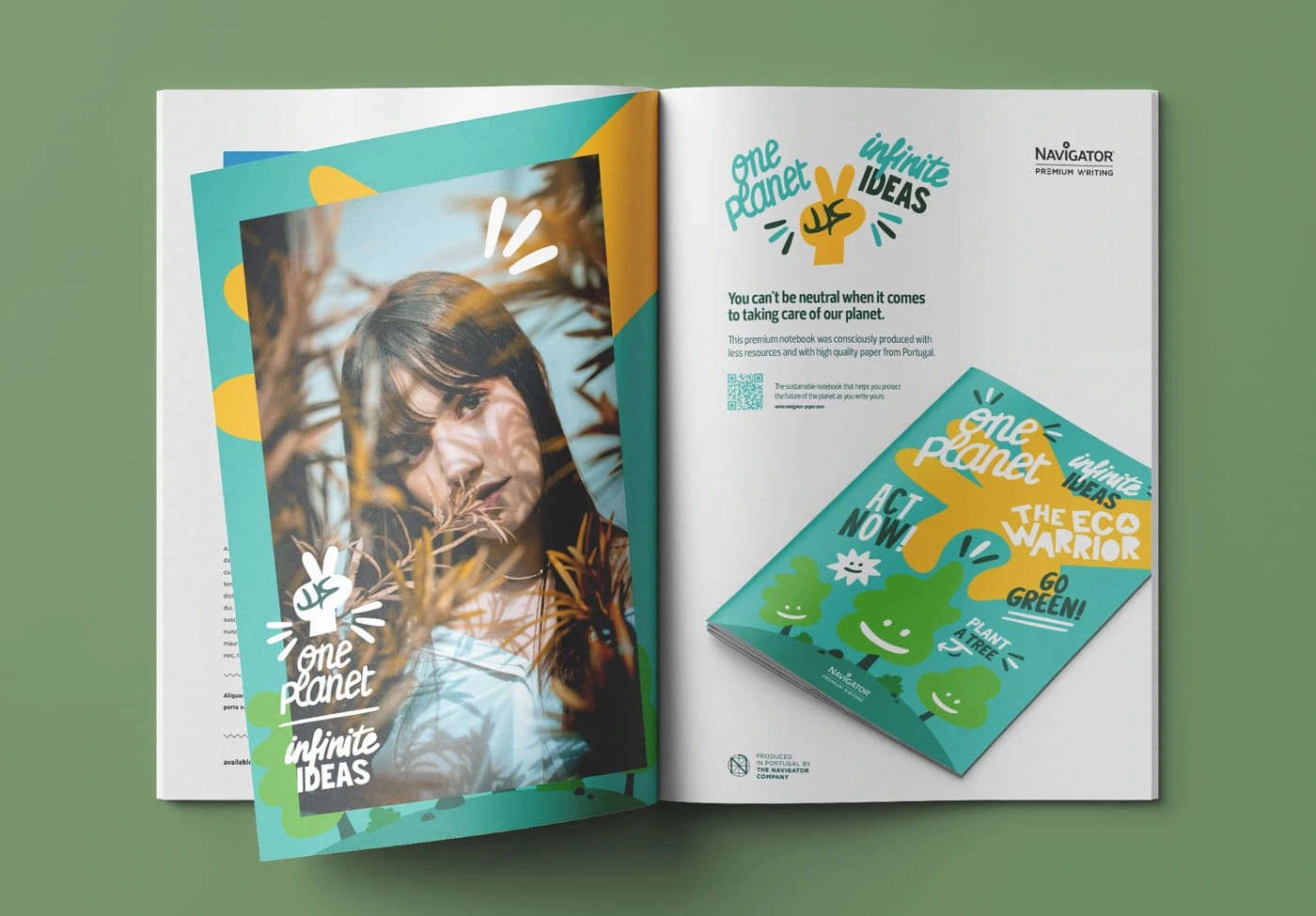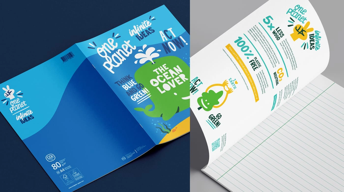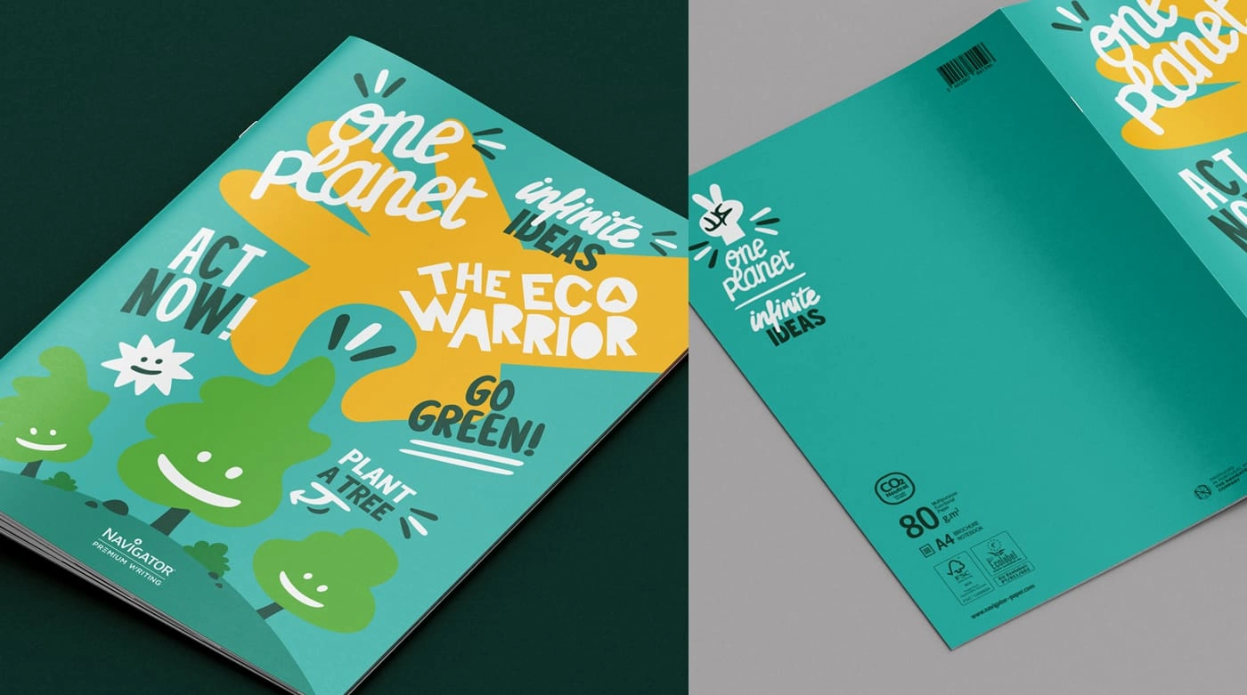 The project consisted of creating proposals for a range of school notebooks that would appeal to the target audience, children and teenagers. I opted for a playful approach to the ecological theme, where each notebook would have a distinct persona/subject. For the proposal, I created these two examples: The Eco Warrior, addressing the importance of reforestation, and The Ocean Lover, focused on ocean preservation.