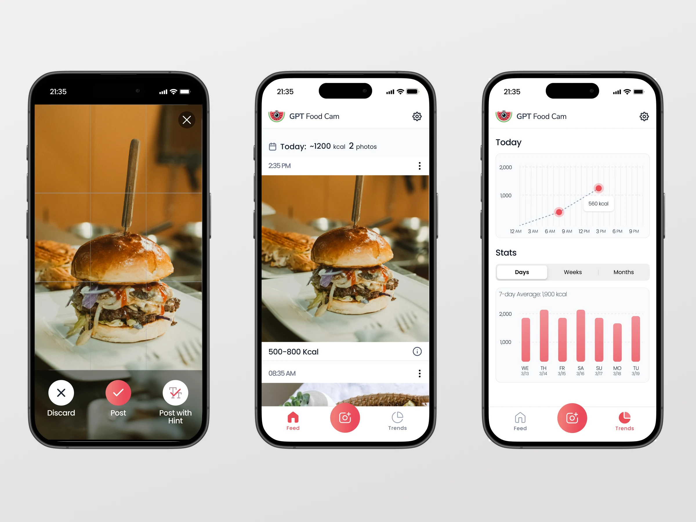 UI Design work I did for a free AI calorie tracking app. GPT Food Cam allows users to quickly snap a photo of their food and get an AI estimate of the calories, as well as trends for daily, weekly and monthly calorie intake. It was recently released on the app store: https://apps.apple.com/us/app/gpt-food-cam-calorie-counter/id6504547599