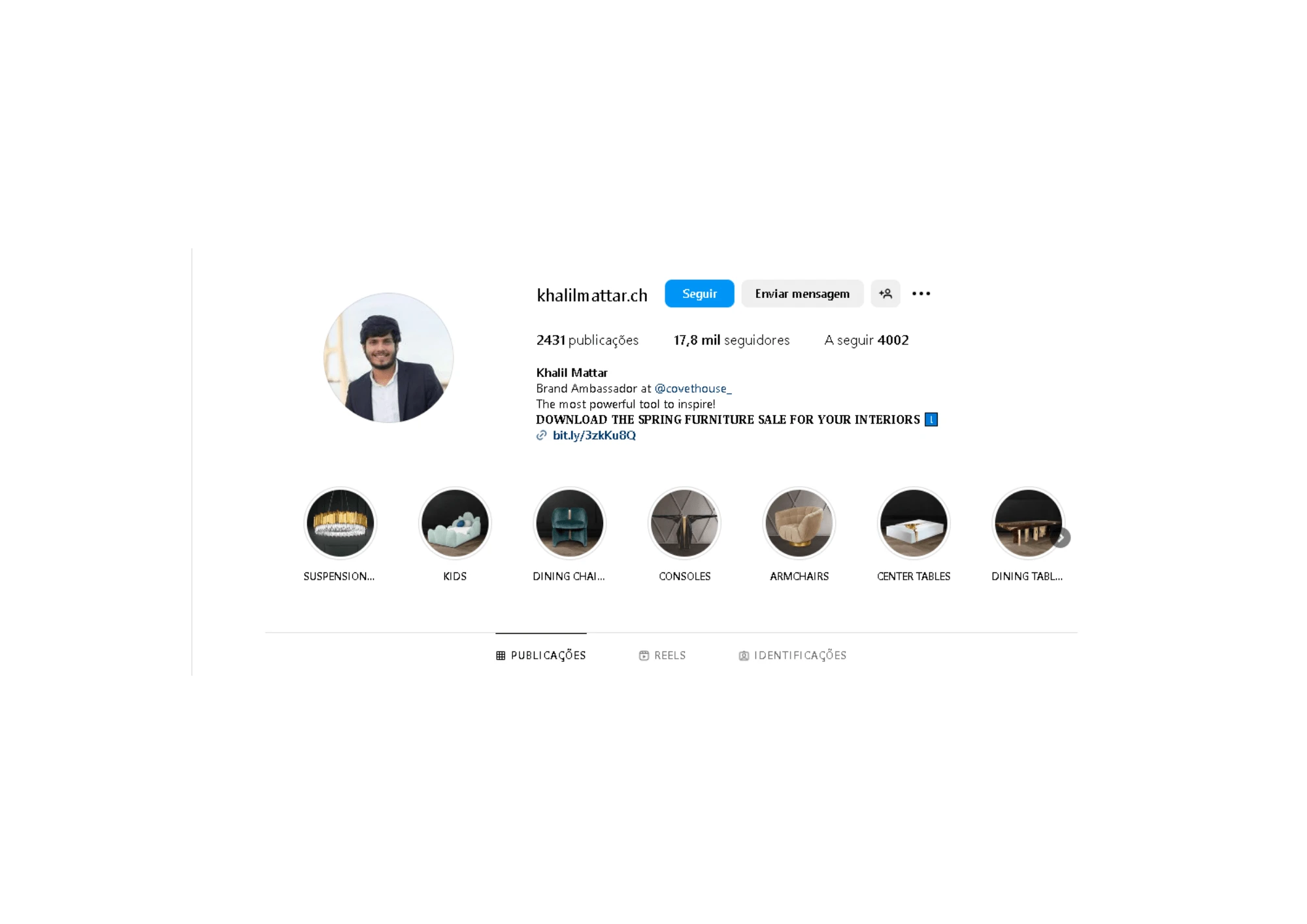 Community Management for Covet House´s Middle Eastern Market. After 3 months of work, grew from 1k followers to 7k. After 1 year it grew to 18k followers.