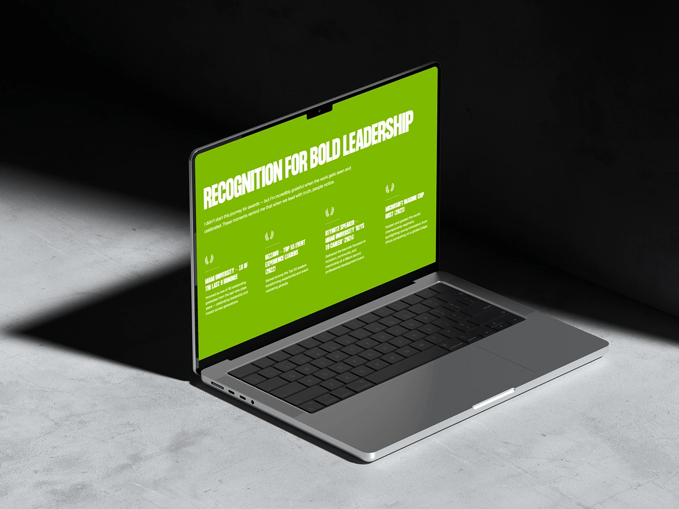 The site brings together her background, achievements, speaking, and resources into one story-driven digital space. My goal was to reflect boldness, authenticity, and connection through design.