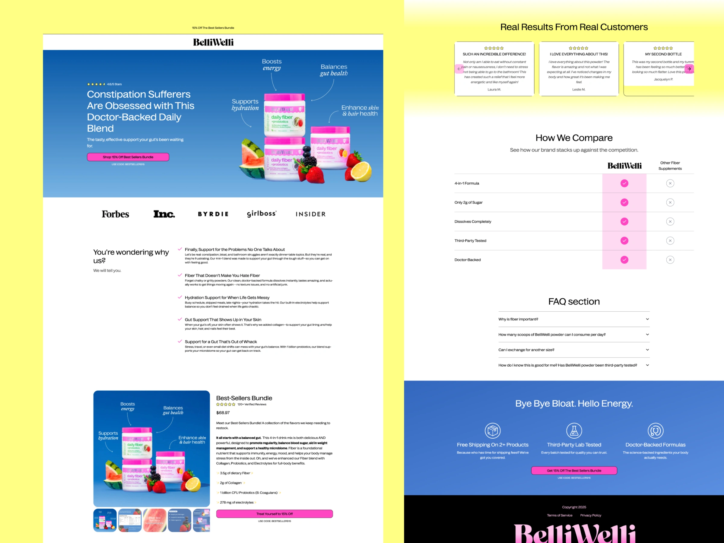 Health & Wellness brands like BelliWelli and Lemme (modern, scroll-stopping visuals + custom comparison tables)