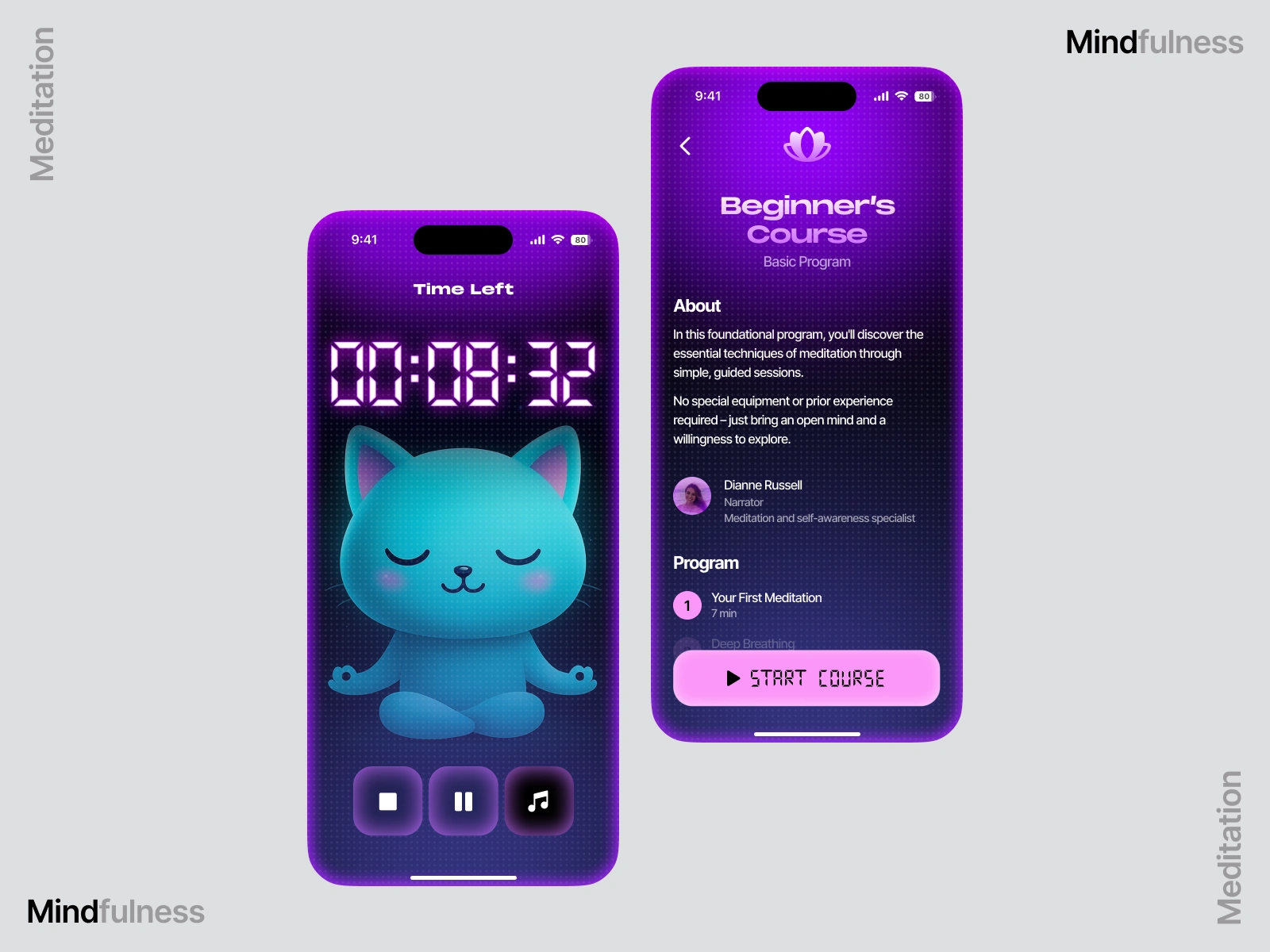 Meditation & Mindfulness Mobile App Design / Cat-Guided Experience