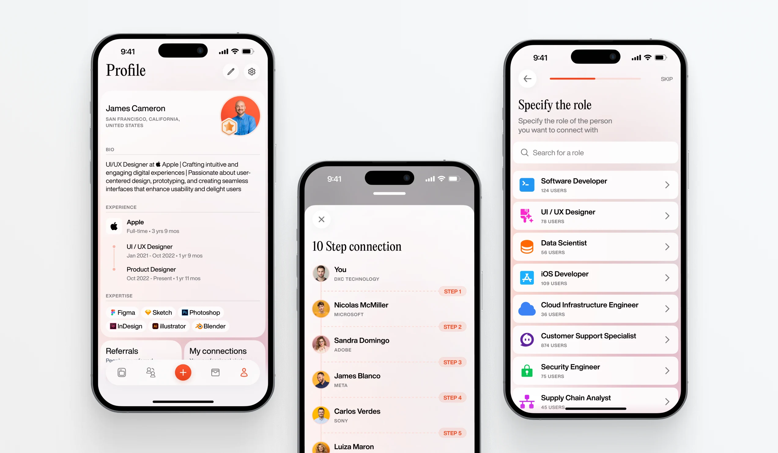 Refera is designed for seamless networking. Connect your socials, add friends, and create referral requests effortlessly. Whether you're looking for a business partner, a skilled developer, a squash partner — or all at once — Refera helps you find the right person through your trusted network.