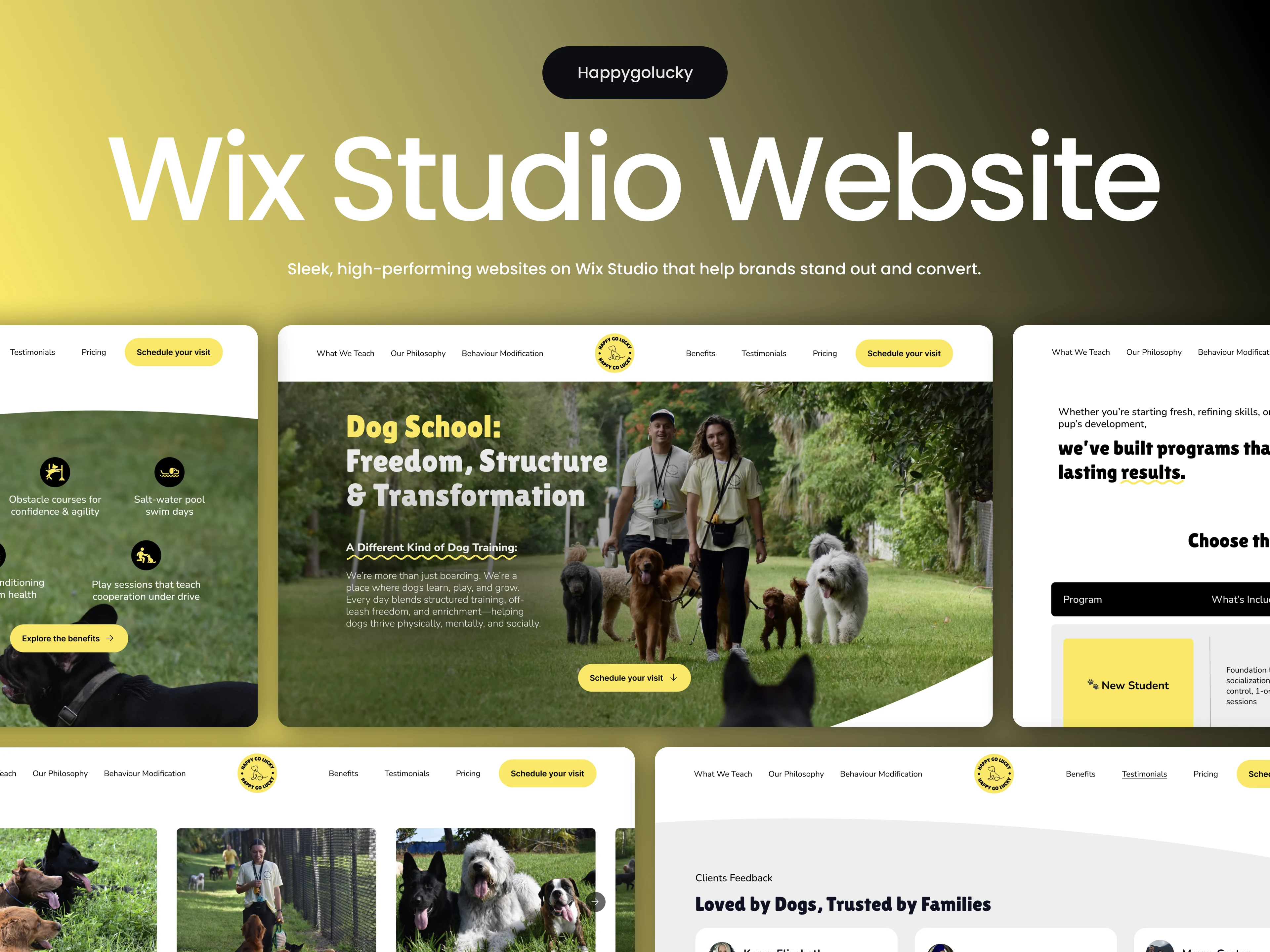Designed a responsive, story-driven WIX studio website for a premium dog training and boarding school. The site blends whimsical visuals with structured content to showcase off-leash programs, enrichment activities, and private lessons. SEO-optimized, mobile-friendly, and built to attract committed dog owners ready to invest in their pet’s growth.
