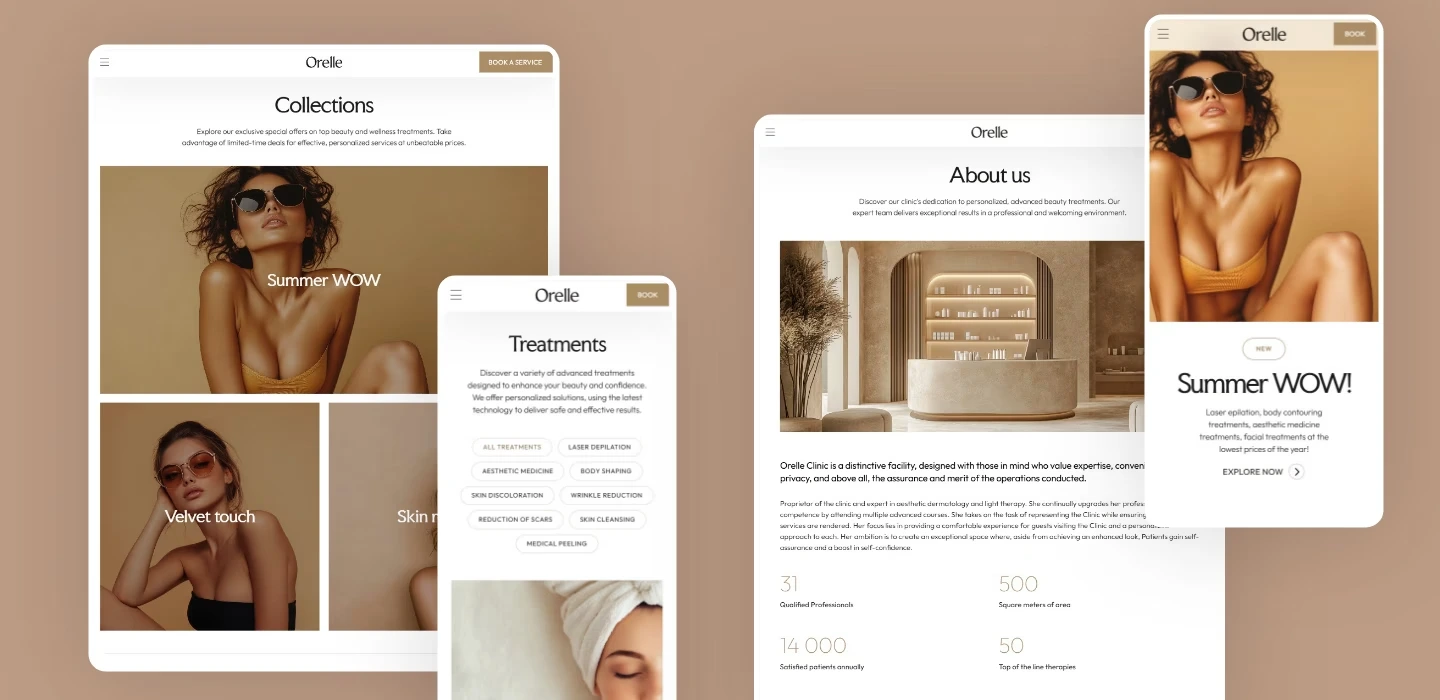 Orelle is a fully customizable Framer template designed specifically to meet the needs of modern wellness and beauty brands. It blends refined aesthetics with a thoughtful UX structure, creating an elegant and high-converting online experience. The visual language—soft color palettes, generous whitespace, and calming typography—immediately sets the right tone, while the layout guides users effortlessly through services, testimonials, and contact sections.