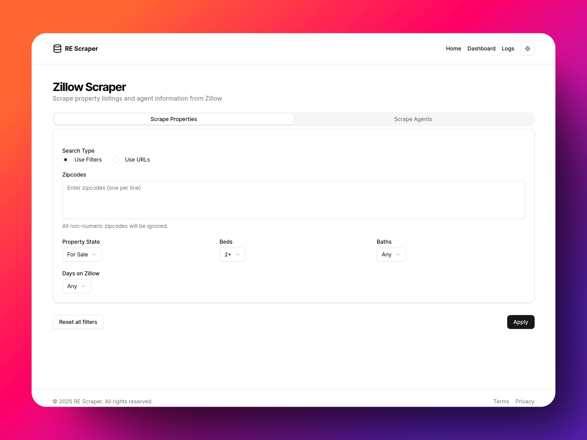 Automates real estate data collection from Zillow. Saves hours and exports CSV/JSON. Efficient market tracking for investors/agents.