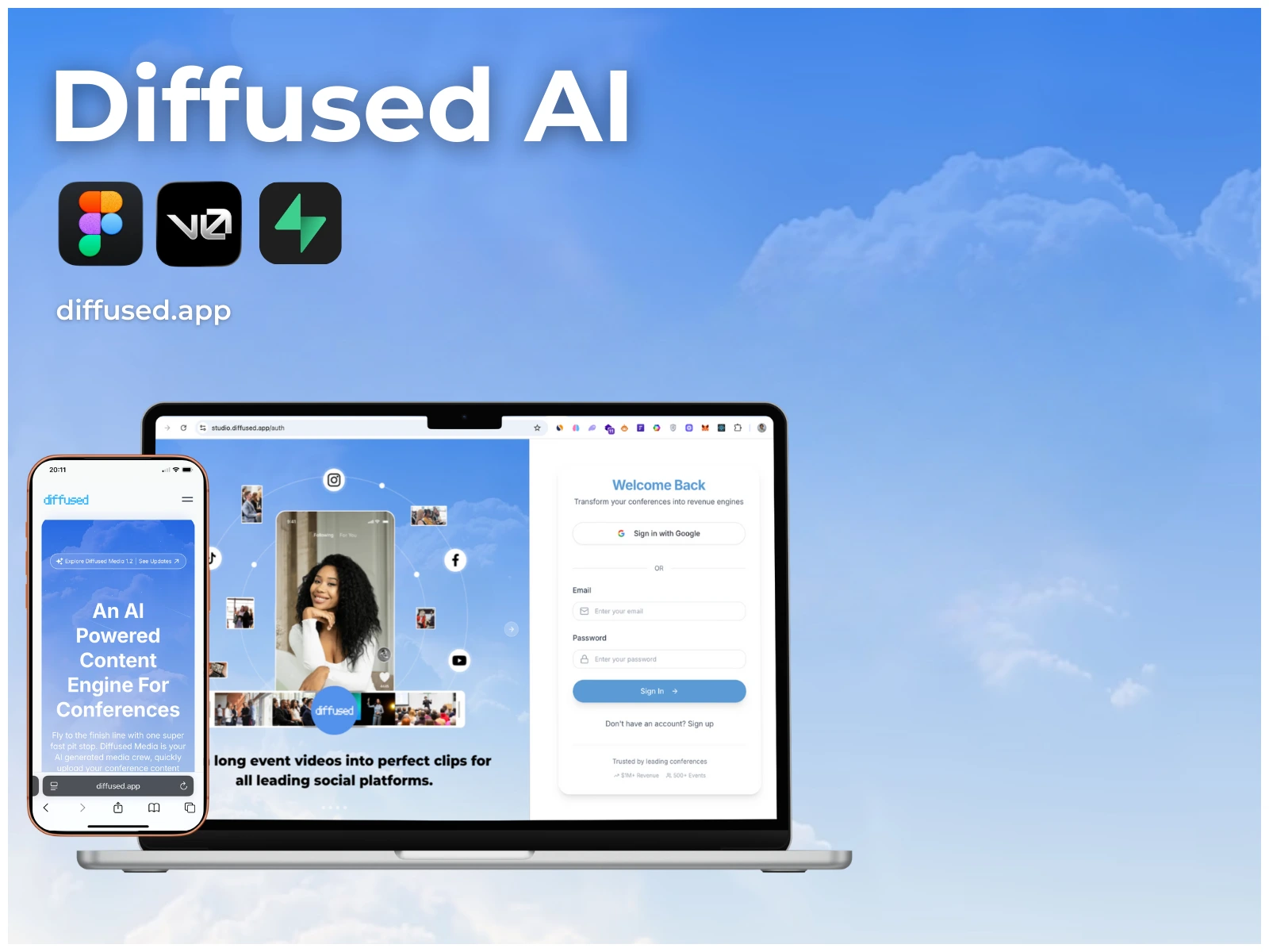Diffuse now serves 50 yearly conferences to take long-form keynotes, interviews, and panel discussions. Detect key speaker moments, creates a microsite for each speaker to further promote the event at the end. Those microsites also work as a lead generation tool for the conference to generate new leads for the next event. I'm really proud of this app because it allowed me to roll all of my past experiences into an industry I'm deeply passionate about.