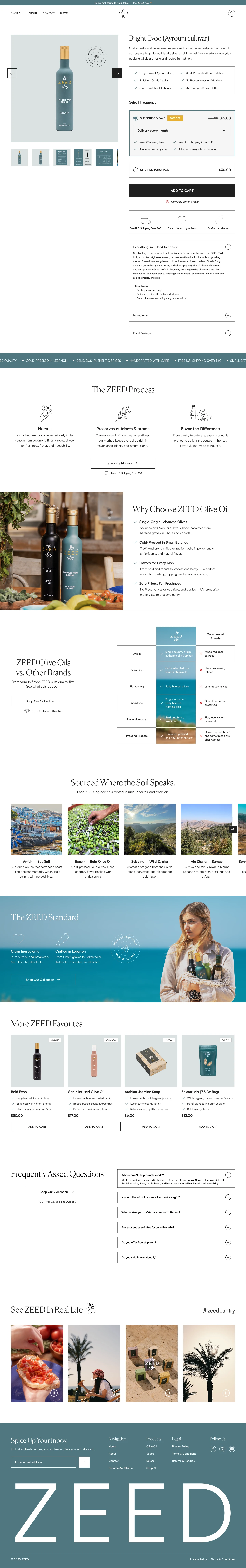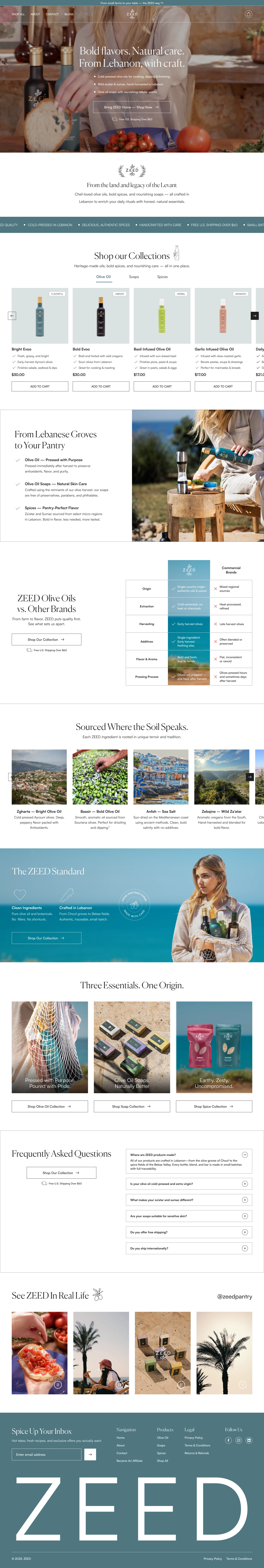 ZEED is a heritage-led brand offering cold-pressed olive oils, Levantine spices, and olive oil soaps sourced from small farms across Lebanon. Rooted in craft and tradition, the brand brings the rituals of the Levant into modern homes through thoughtfully made, naturally refined products.