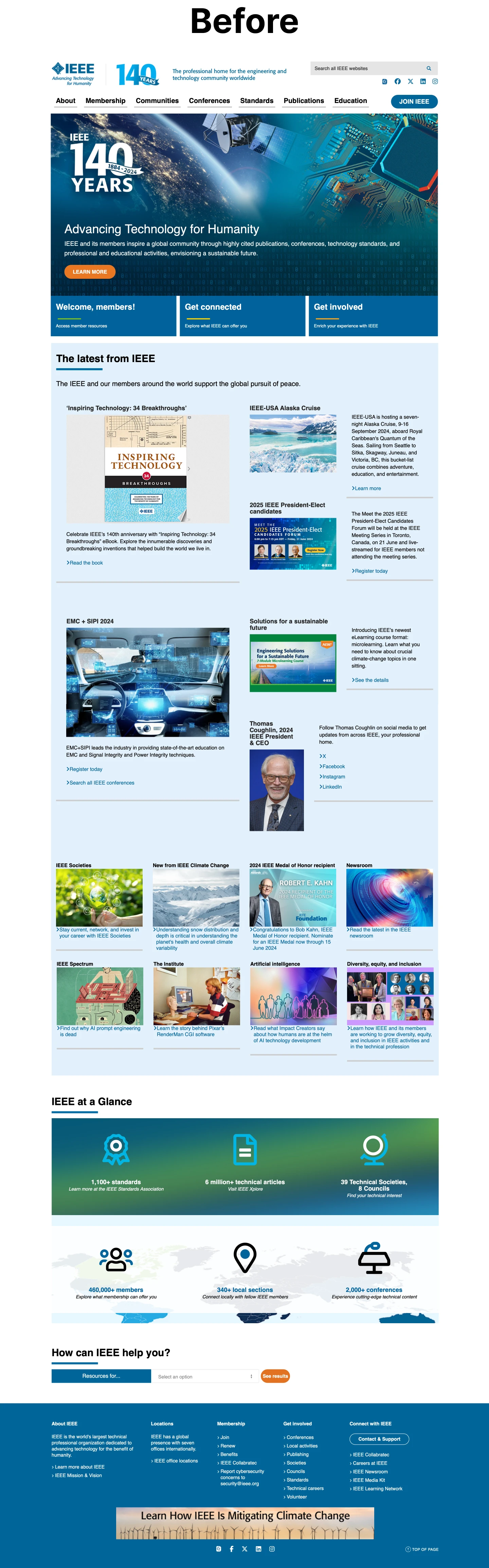 This personal project was to redesign the IEEE homepage to enhance user experience, highlight key resources, and reflect IEEE’s mission.