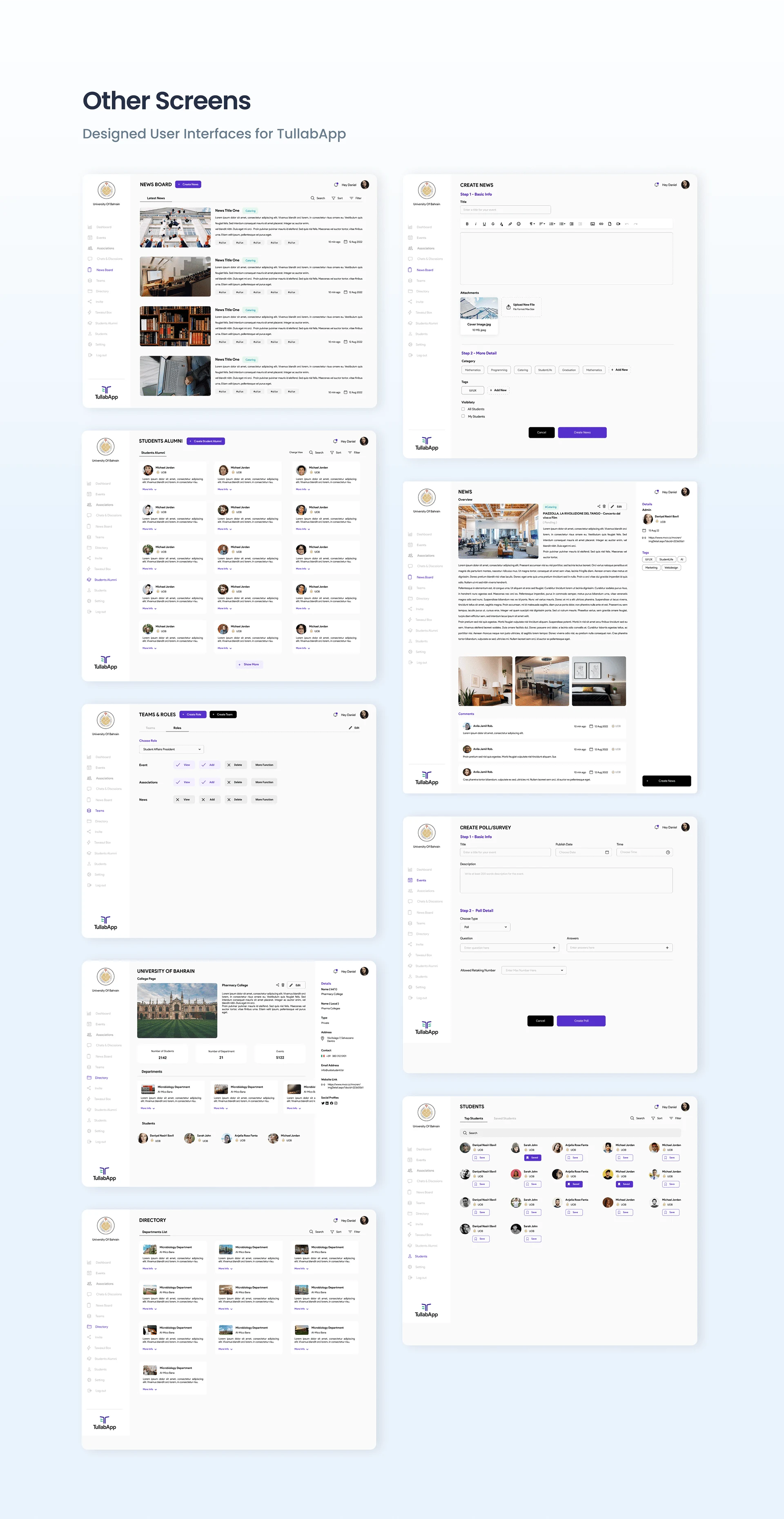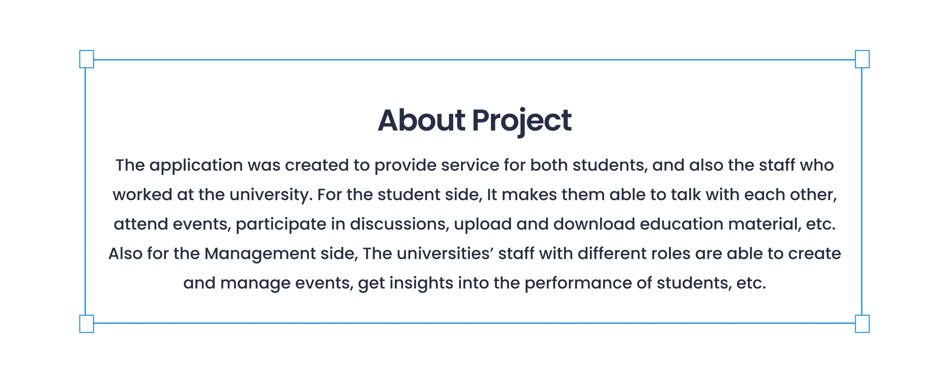 The application was created to provide services for both students and the staff working at the university.
