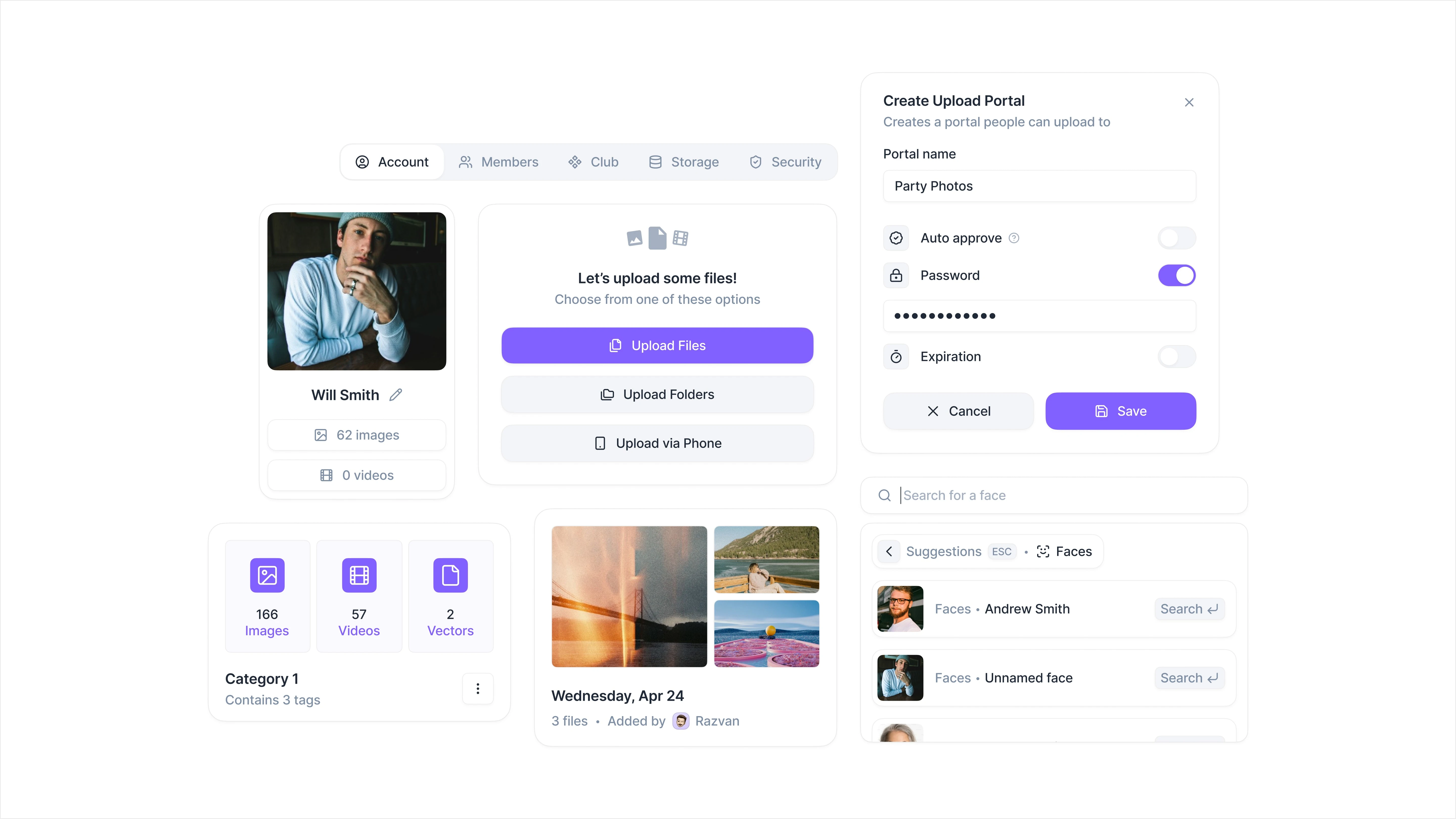 Created from scratch a new face-detection and category feature, designing both the UX flow and UI screens to make it intuitive for teams to use