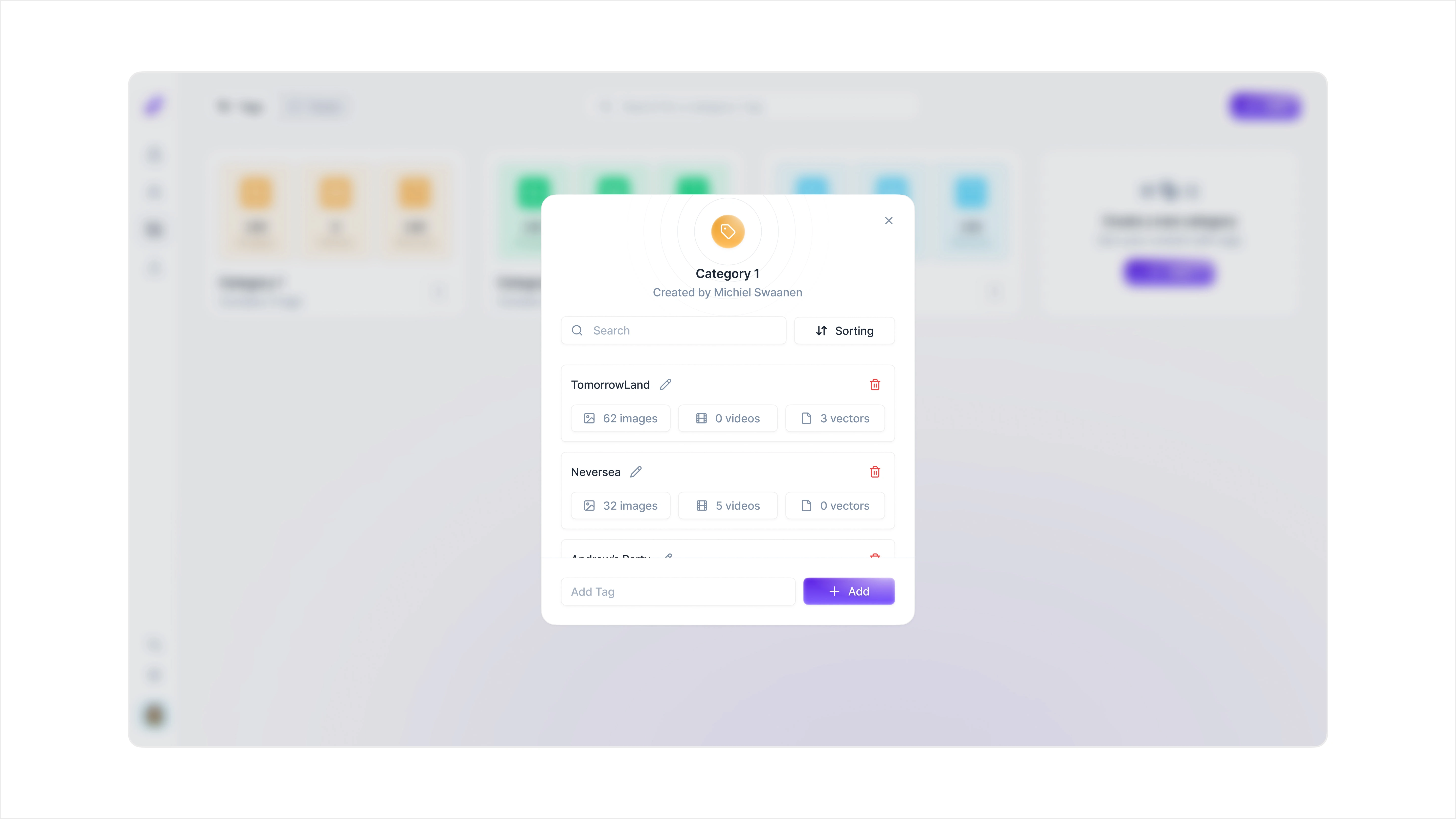 Redesigned the tagging creation model to avoid confusion between the search bar and add tag component