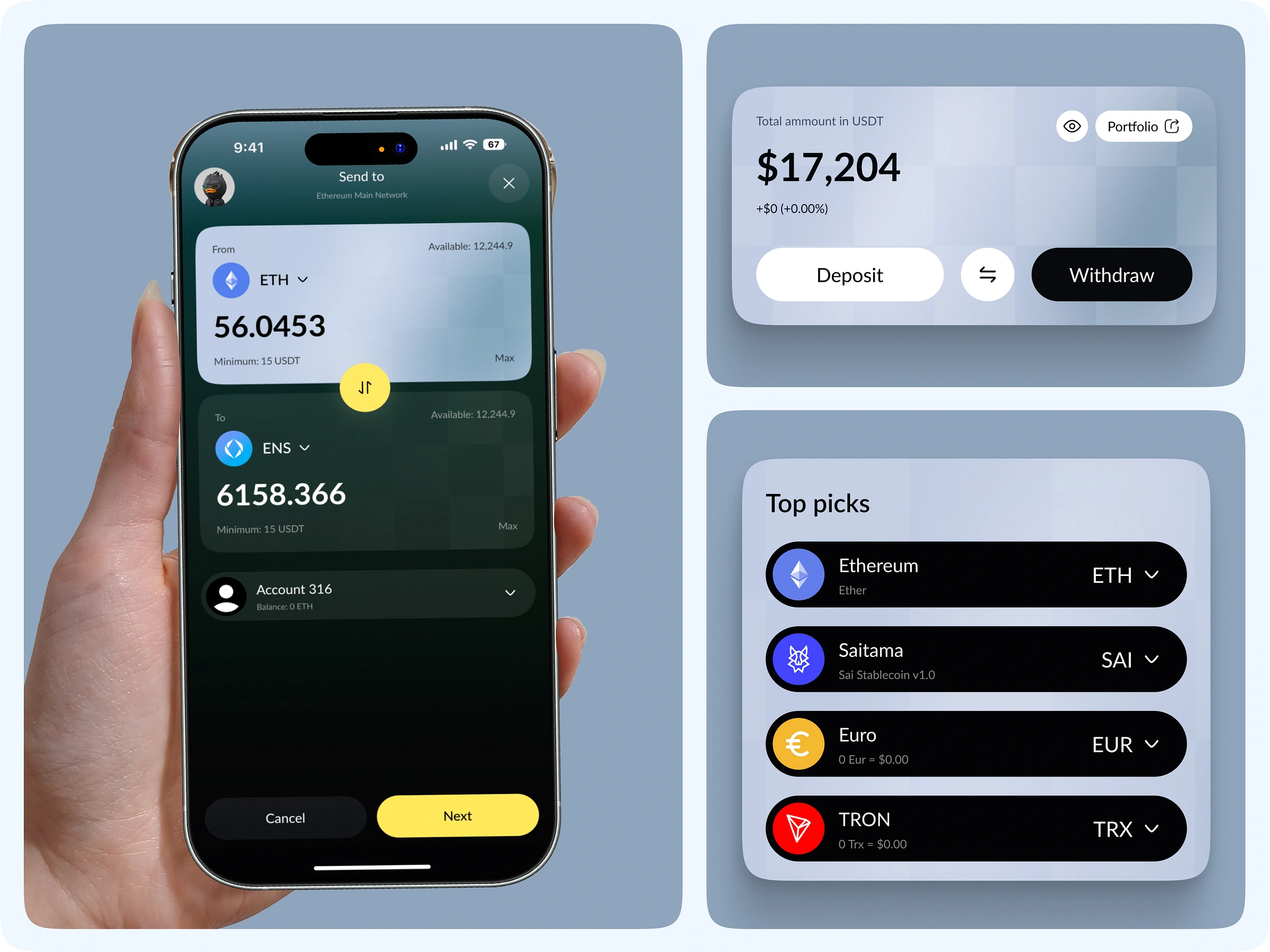 This Blockchain Wallet app secure, non-custodial app for storing, sending, and receiving cryptocurrencies and supports multiple assets, biometric security, QR payments, real-time tracking, and a built-in DApp browser. With seamless cross-platform sync and fiat on-ramp options, it offers a fast and user-friendly crypto experience.