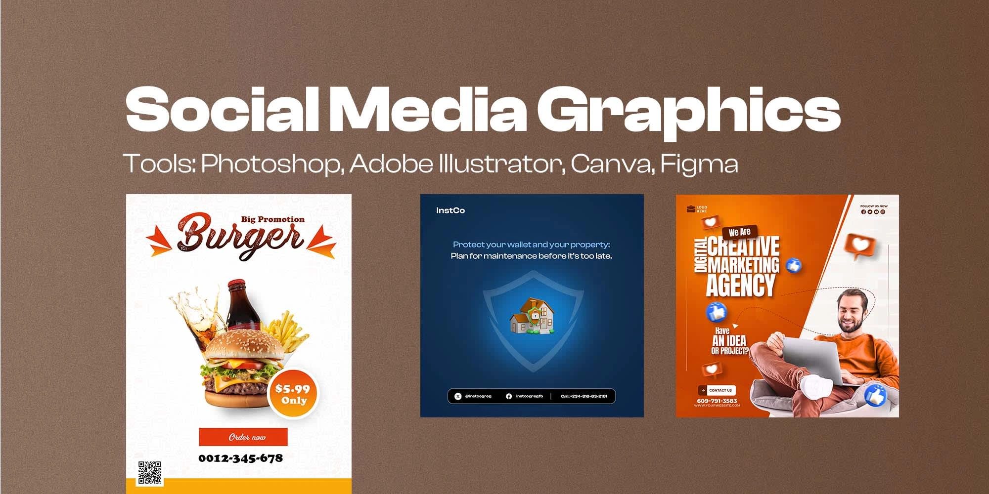 A collection of social media Graphic designs for different brands.